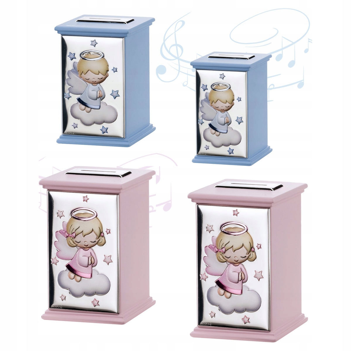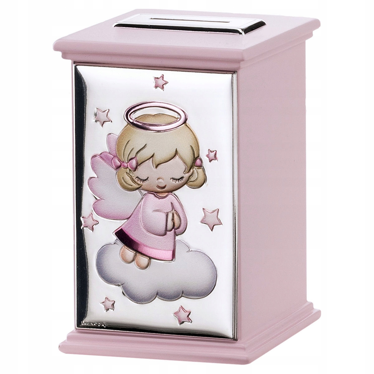 Дитяча срібна скарбничка ангел 8х8х12 см в подарунок | Розмір: 8x8 H12 см | Колір: рожевий з музичною скринькою | Артикул: CM271676