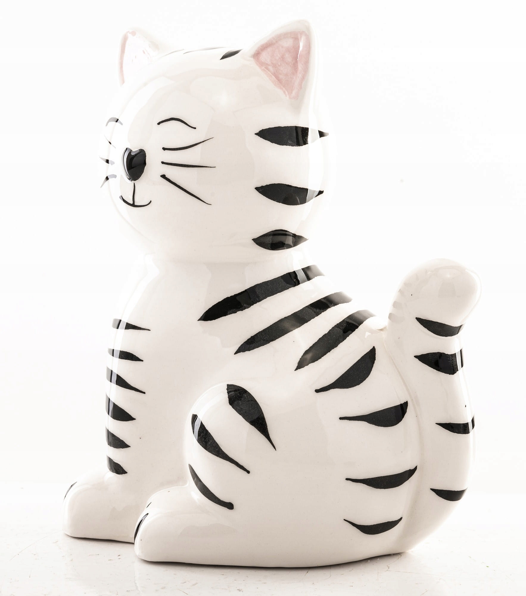 Велика скарбничка для зберігання заощаджень. Виготовлений з кераміки. У кошеняти вгорі є отвір - проріз для вкладання грошей. Унизу є отвір для видалення дрібних грошей.