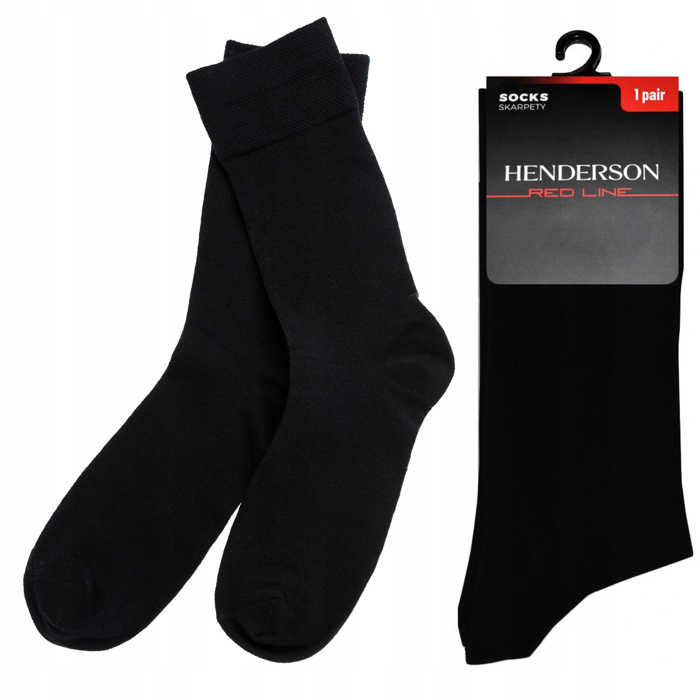 Henderson Red Line - чоловічі костюмні шкарпетки з високоякісної бавовни з додаванням еластичних волокон. Завдяки правильно розробленій манжеті без тиску та надзвичайно гнучкій верхній частині носка вони забезпечують вільний кровотік у ногах. Вони ідеально підходять для елегантних стилів і для повсякденного носіння.