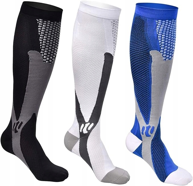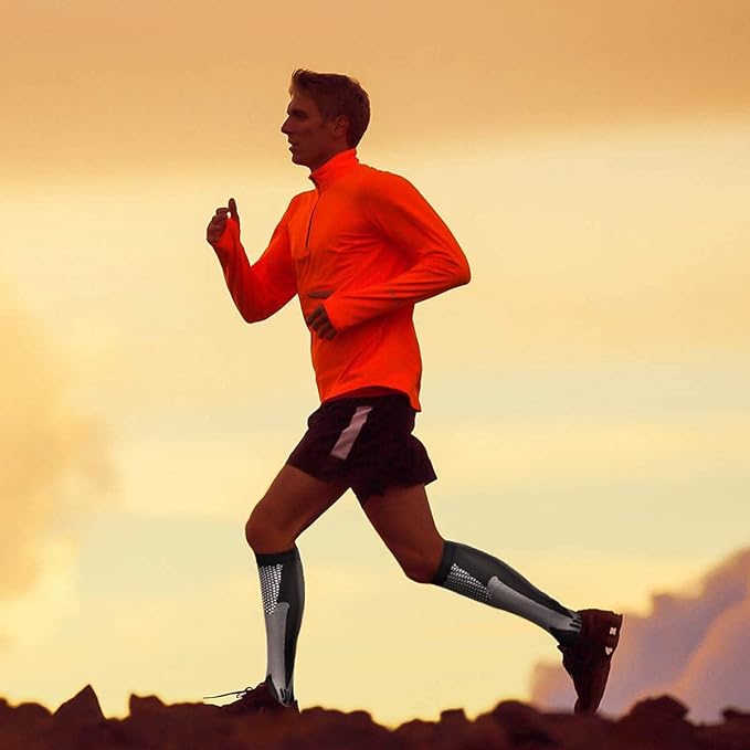 Компресійні панчохи виготовлені з 65% нейлону та 30% поліестеру + 5% еластану, які чудово пропускають повітря та добре відводять вологу, з неймовірним комфортом у носінні, підходять для всіх пори рік, літо і зима! Ідеально підходить для бігунів на довгі дистанції, марафонців, велосипедистів і тенісистів, які хочуть підвищити свою ефективність.