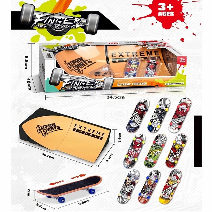 Скейтборд і рамп дозволять вам займатися майже необмеженим числом трюків на дошці навичок. набір складається з пандусу, скейтборду, замінних коліс, завдяки якому ви можете вдосконалити свої хитрощі. Скейтборд забезпечить велику забаву. Крім того, тренує координацію наших пальців. Finger забезпечить багато годин веселощів , а освоєння наступних трюків спонукає вас продовжувати грати та змагатися з друзями.