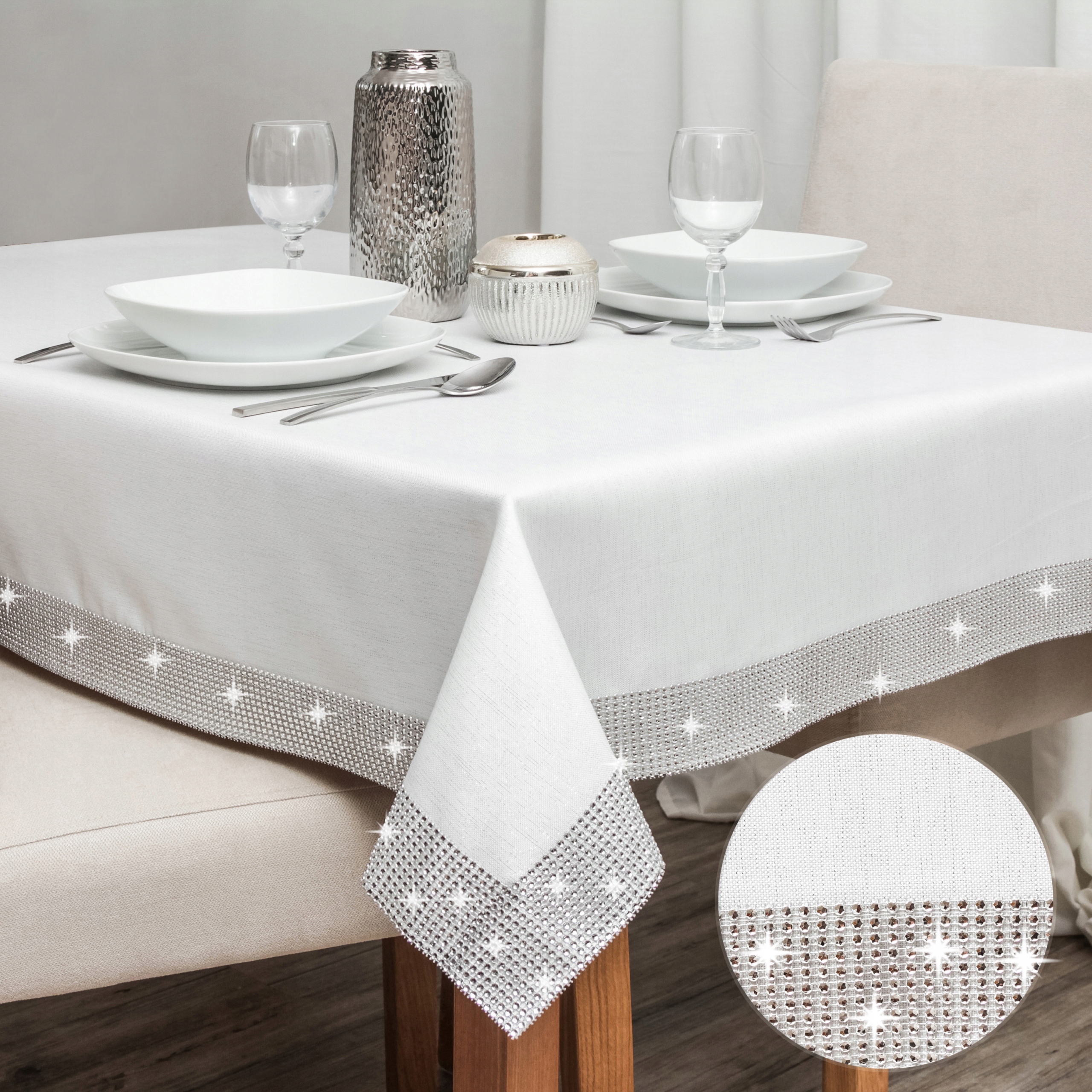 ✅Оздоблення: стрази завширшки 6 см включені в довжину та ширину скатертини