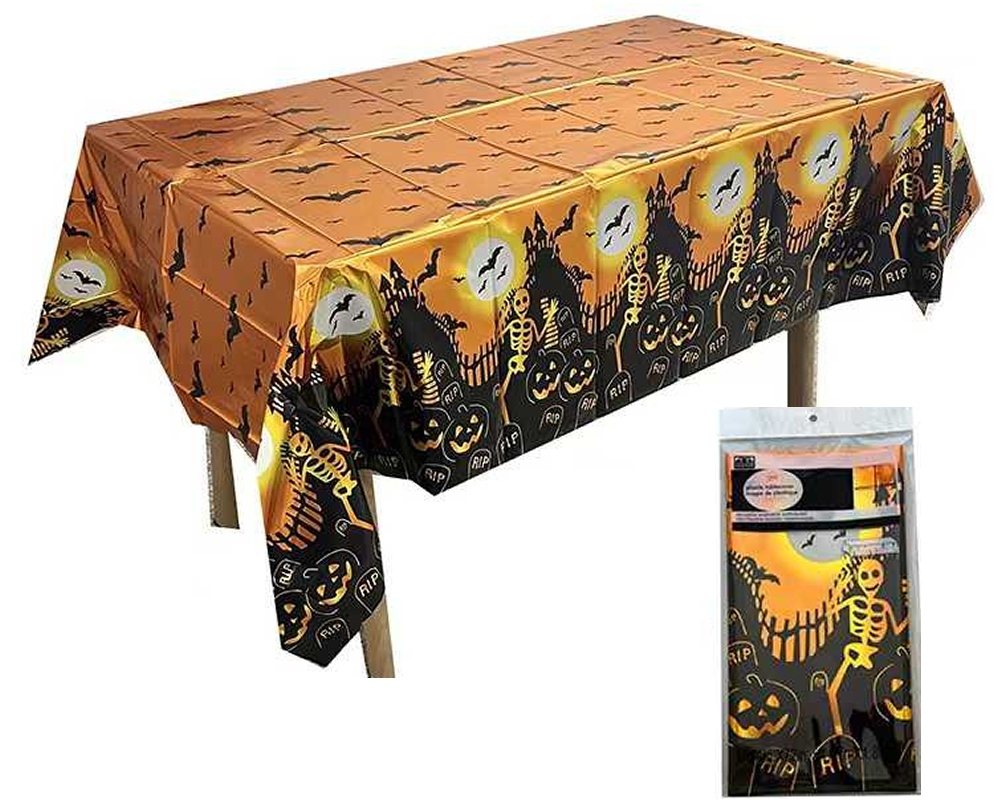 скатертина на хеллоуїн з чорної фольги з гарбузами 137х274