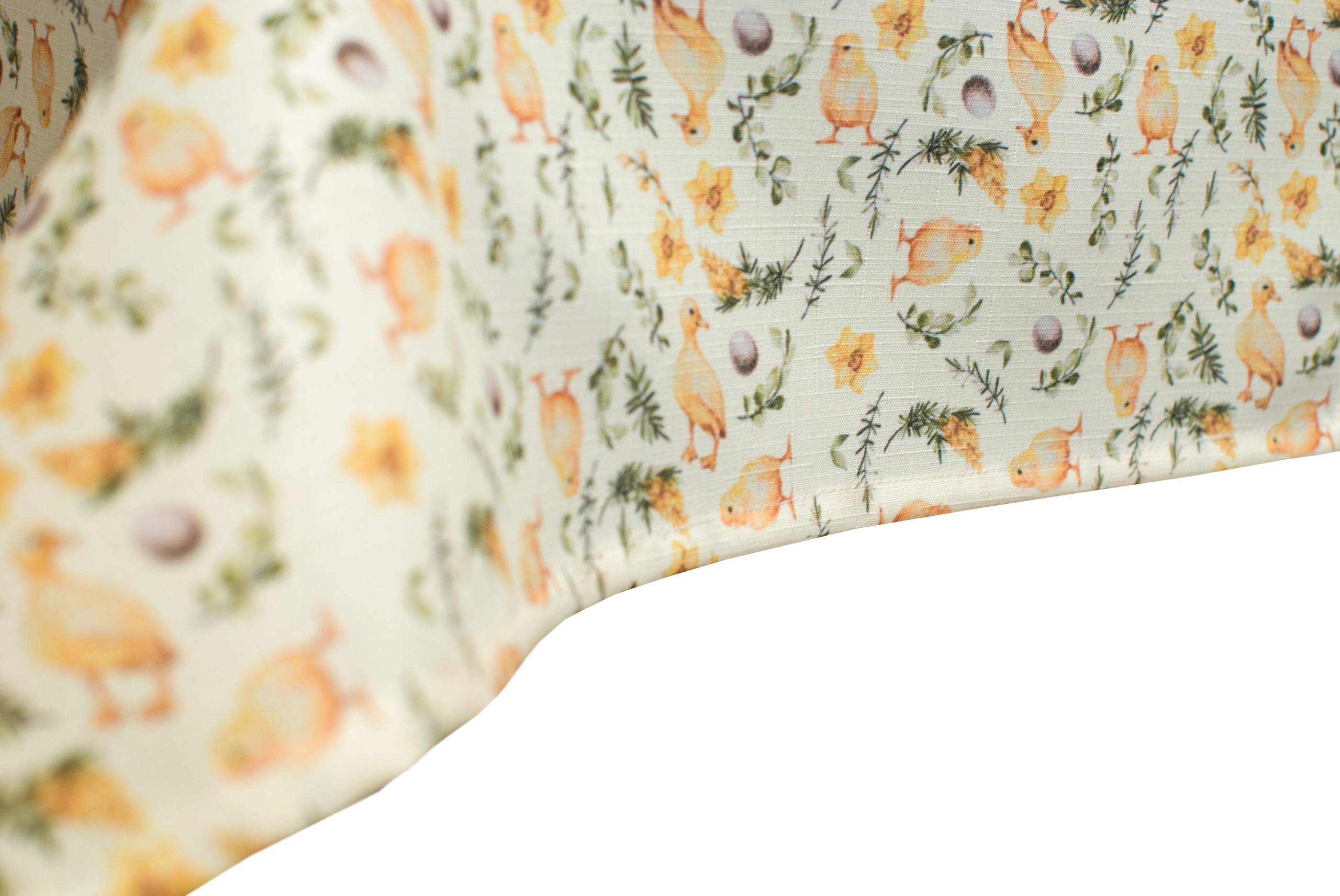 ніжна пасхальна скатертина: крихітні курчата на кремовому фоні, що нагадує льон.