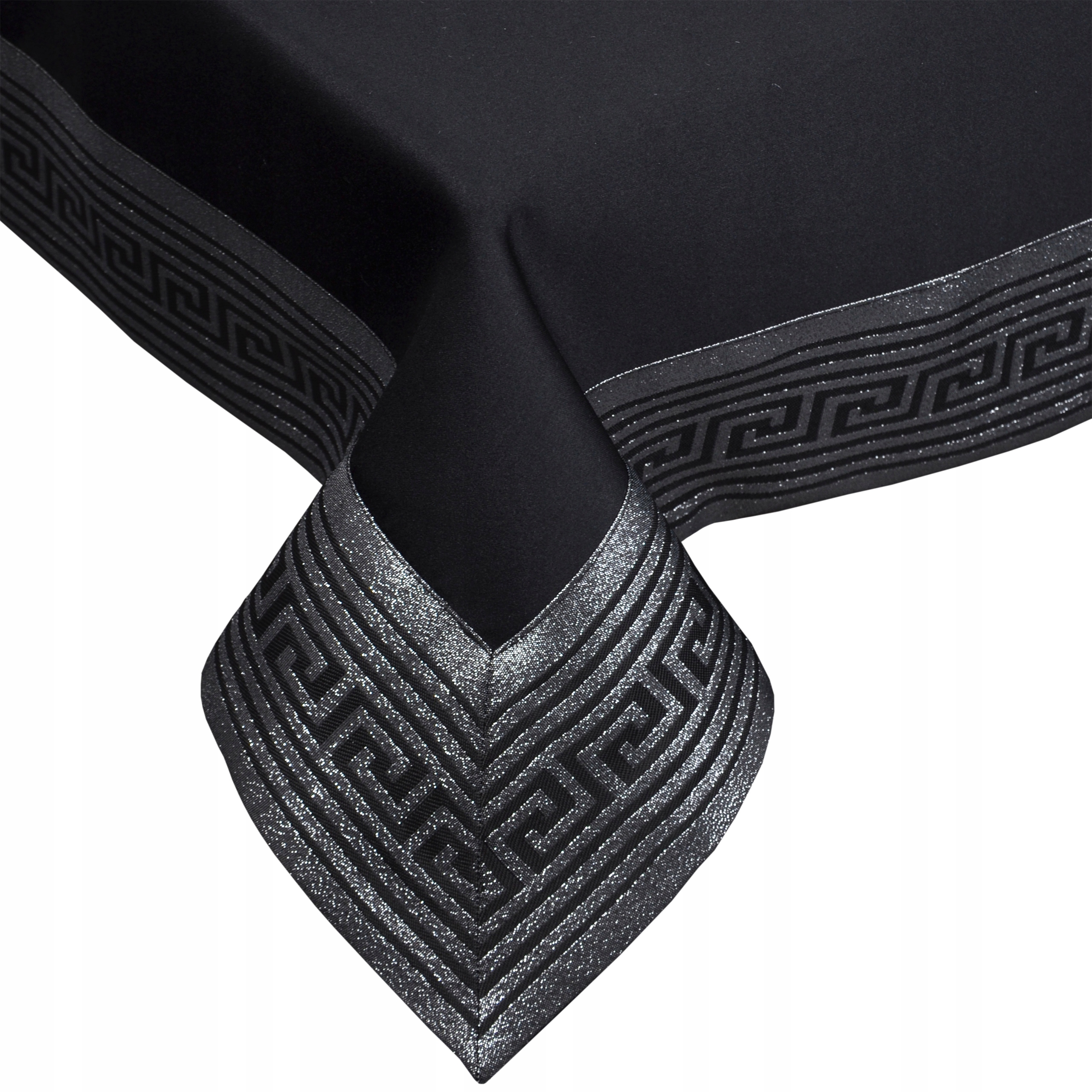 The скатертини виготовлені з високоякісної, стійкої до плям поліестерової тканини, обробленої навколо декоративною смугою шириною 10 см, вплетеною металізованою ниткою срібла або золота з оригінальним грецьким візерунком.