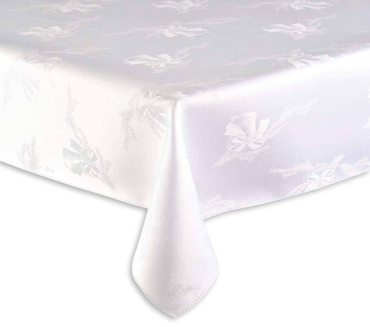 ПЛЯМЯСТІЙКА СКАТЕРТИНА - БІЛА - РІЗДВО З ДЗВІНОЧКАМИ - 140x220