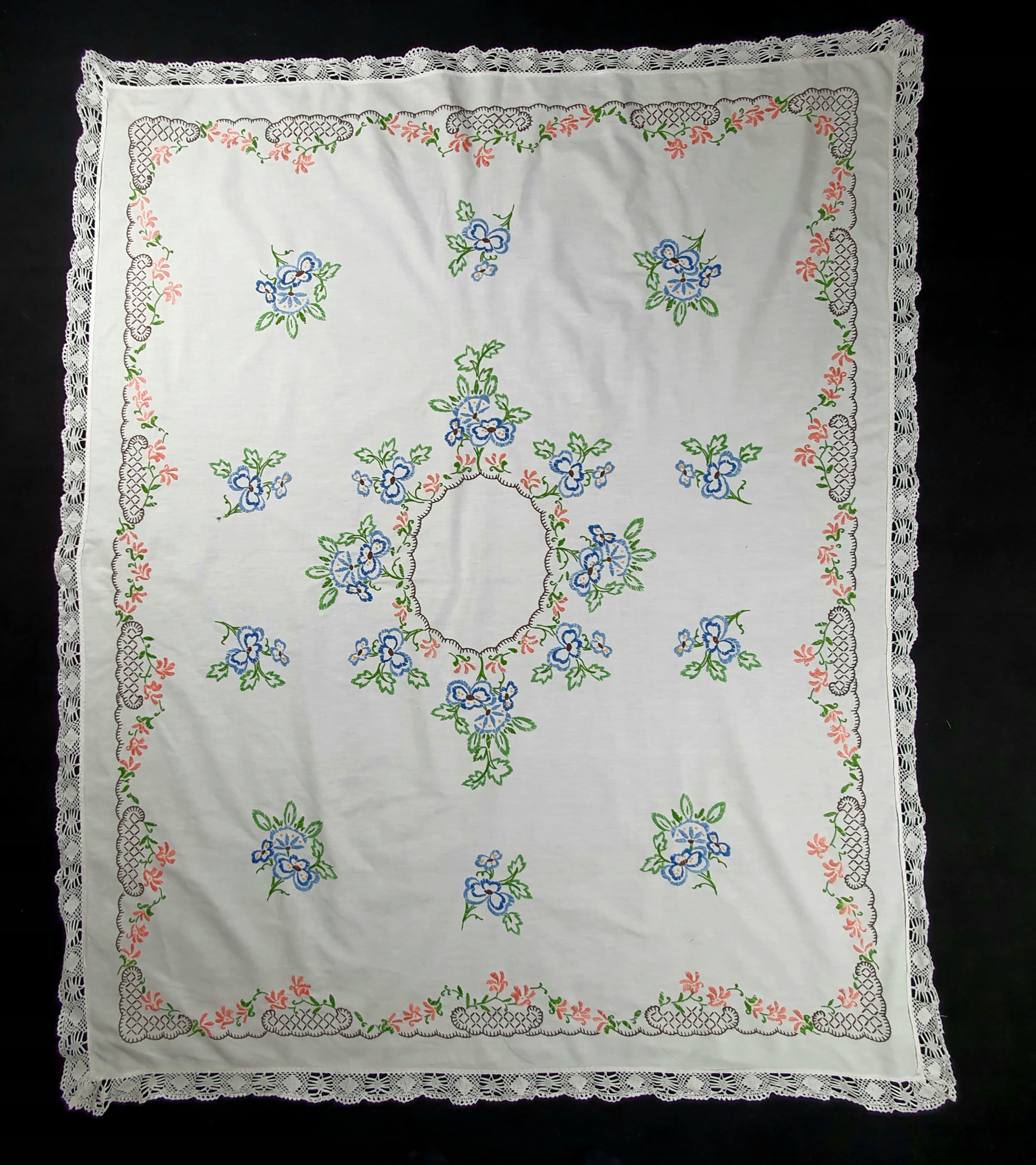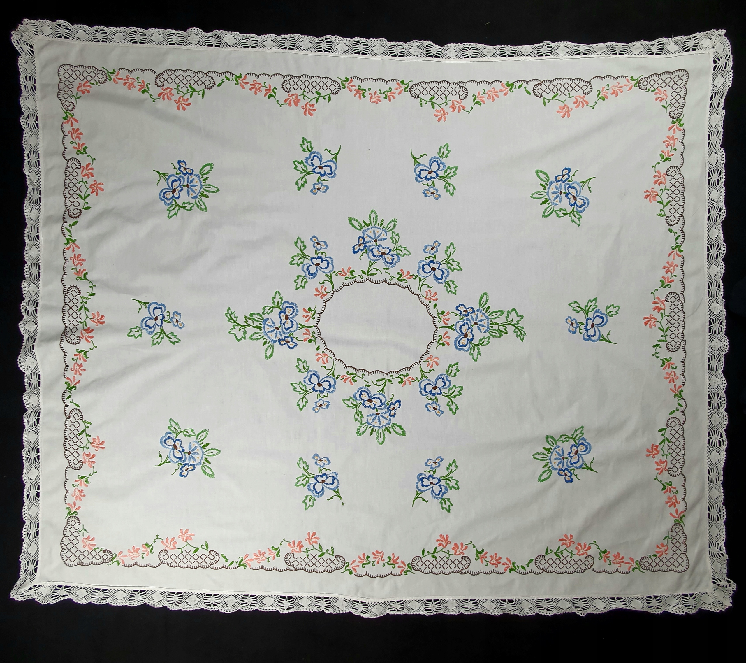 БІЛА РУЧНА ВИШИТА ВЕЛИКА СКАТЕРТИНА, РОЗМІРИ 152 х 125 СМ.