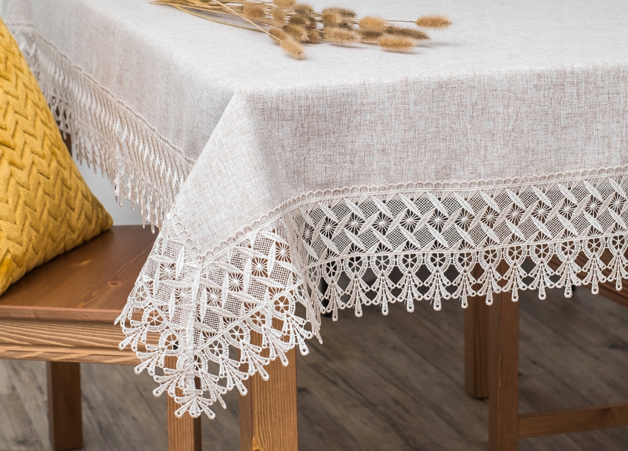 ➡️Скатертини виготовлені з високоякісної поліестерової тканиниз плямостійкістю з вшитим гіпюровим мереживом.
