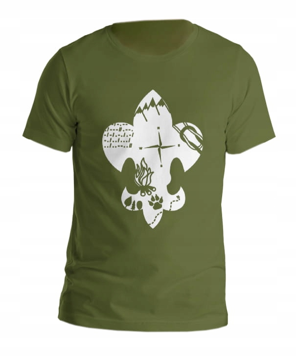 Скаутська футболка з лілеєю, в якій вовча лапа, ліс, компас, азбука Морзе та багаття. Універсальний скаутський малюнок сподобається всім скаутам, туристам та інструкторам, які із задоволенням одягнуть футболку з лілією на збори, табори, бівуаки, до школи та на роботу :)