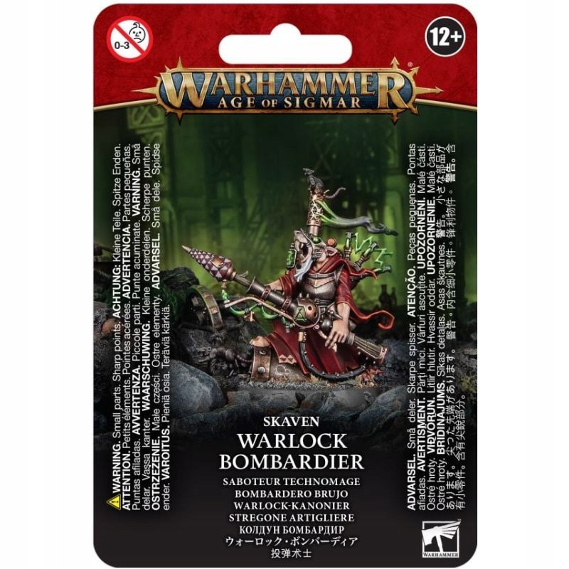 Почасти чарівник, почасти артилерія, уся винахідливість скавенів – Warlock Bombardier є фантастичним допоміжним Герой вашої скавенської армії. Ідеально підходить для підтримки Warp Lightning Cannons, Stormfiends і Warplock Jezzails, Warlock Bombardier розбиває ваших ворогів (і, іноді, себе) на шматки їхньою рокетною ракетою, одночасно вражаючи їх блискавками. Якщо ви хочете стати одним із найнепередбачуваніших (і смертоносних!) героїв Скейвена, це модель для вас.