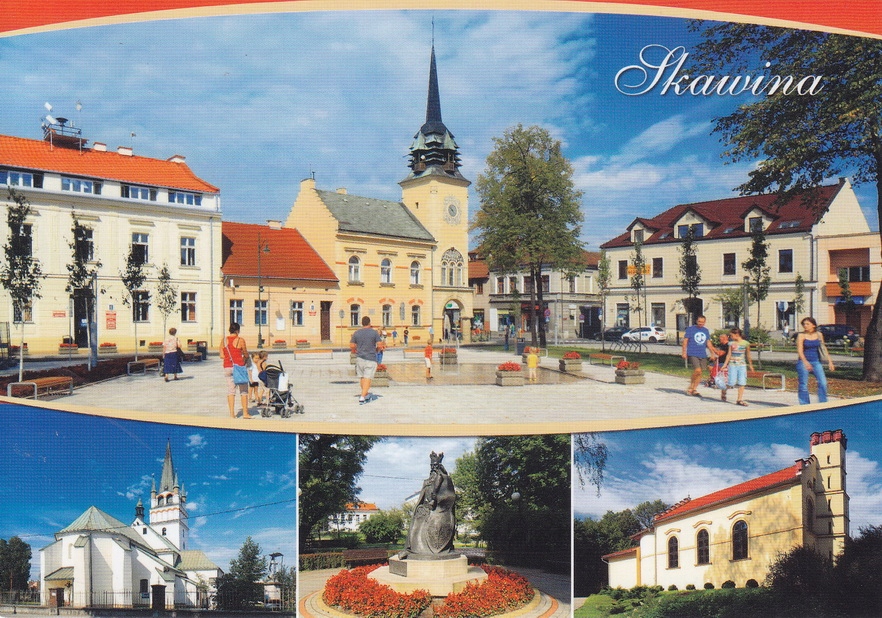 СКАВІНА - РИНОК РИНОК - РАТУША - ЦЕРКВА - ПАМ'ЯТНИК - ПАЛАЦ SOKÓŁ - CKiP. Nowa. Немає тиражів. Стан - дуже хороший.