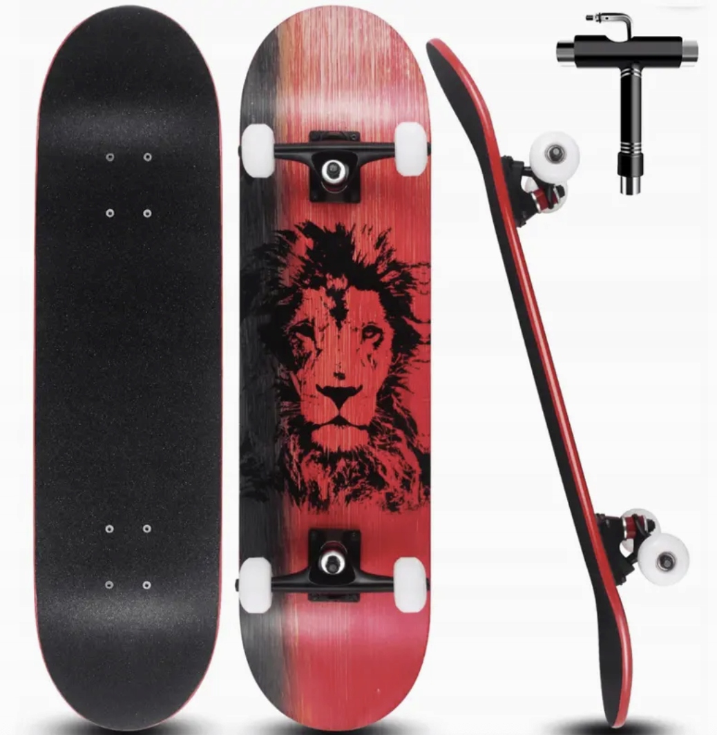 Сильна і міцна конструкція: скейтборд виготовлений з 7 шарів у 100% високоякісній кленової деревини з водонепроникними краями, твердим і міцним, може використовуватися в різних середовищах, з розмірами 80 х 20,5 х 12,5 см і ваги 2,3 кг. Він тримає до 100 кг.