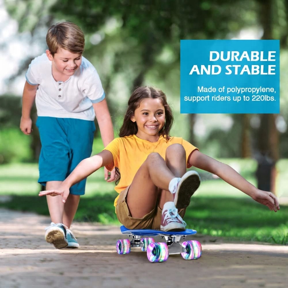 - Створюємо задоволення: скейтборд оснащений світлом- підсвічує колеса для дійсно веселої їзди. Ліхтарі на велосипеді яскраві та барвисті, що забезпечує додаткове задоволення. Вам більше не потрібно турбуватися про зарядку або заміну батарей, які завжди горять під час катання.