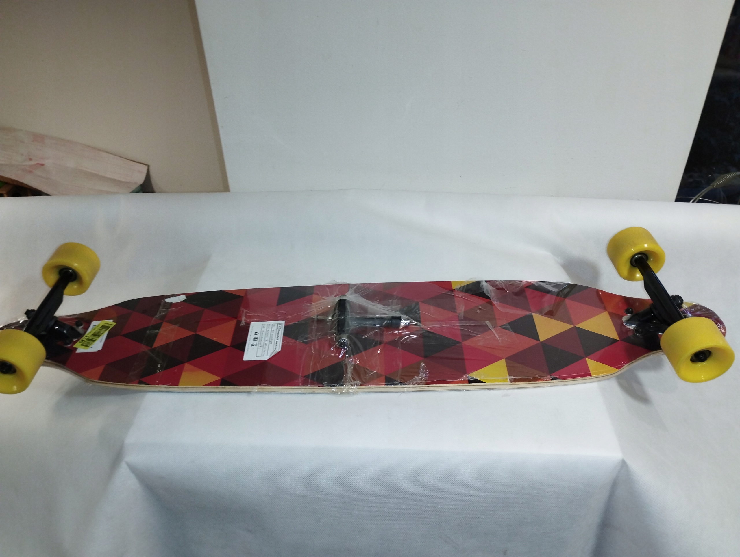 - Стійкий кленовий настил: 107 см завдовжки х 22 см завширшки виготовлено з холоднопресованого 9-шарового натурального клена. Лонгборд міцний і гнучкий для чудового катання на скейтборді, а рекомендований діапазон ваги становить від 20 кг до 100 кг.