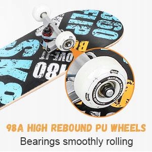 - 【Безпечний і стабільний】Підшипники ABEC-7 покращують несучу здатність, високопружні ПУ колеса 95A можуть покращити прискорення, захист від ковзання та зносостійкість, міцне зчеплення, можуть досягти амортизації та плавного керування для більшої стабільності на будь-якій поверхні. Підходить для вулиць, скейт-парків, гладких і нерівних поверхонь.