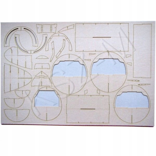 Вирізані лазером елементи моделі, які в оригінальному вирізі потребують склеювання відповідної товщини картону. Ці елементи точно вирізаються лазерним плотером відразу в картоні відповідної товщини і вимагають лише виштовхування з аркуша пальцем (вони з'єднані лише маленькими з'єднувачами).