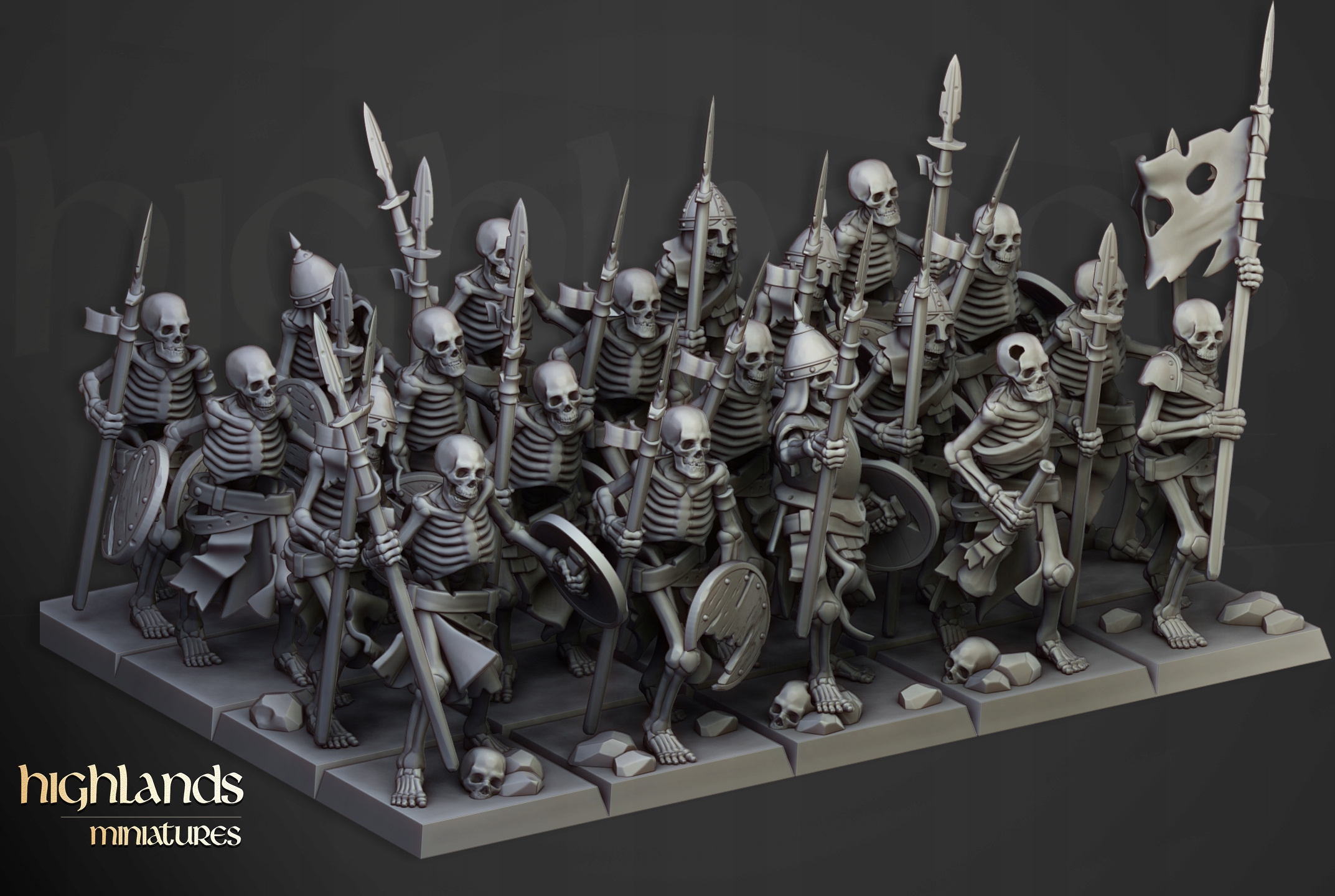 Skeleton Warriors Unit CMD - Highlands Miniatures