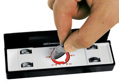 Незважаючи на професійну мету, Ski Pro Sharp точилка характеризується насамперед дуже простою експлуатацією. Обидва встановлення кута бічного краю та положення файлу (разом із його заміною) можна зробити за допомогою однієї монети.