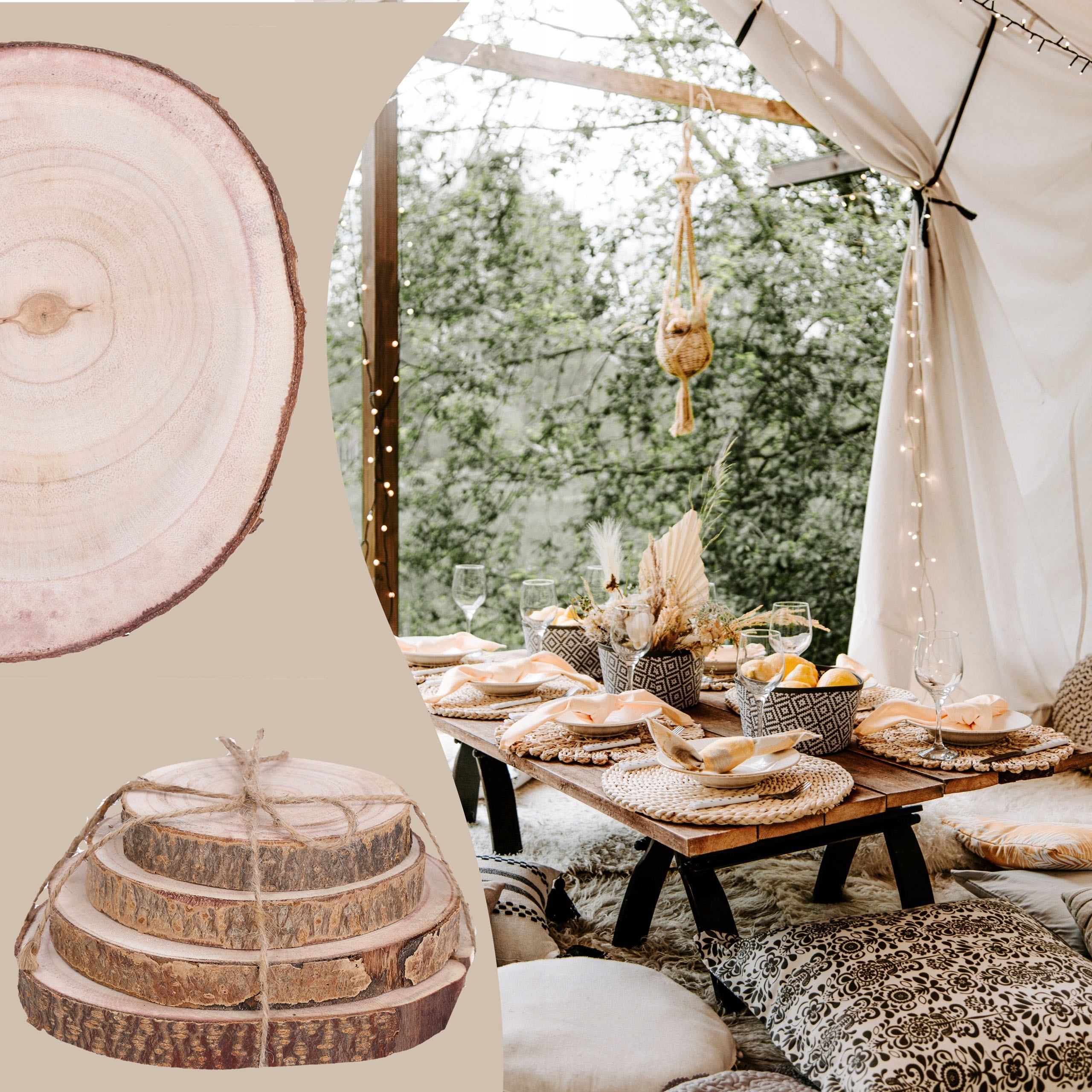 Кожна скибочка зберігає оригінальну кору, що надає їй унікального природного вигляду. Ідеально поєднується з сільським, скандинавським або бохо інтер’єром, вносячи в простір теплий, органічний акцент.