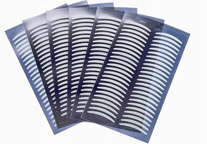 Легка у використанні та зручна. Завдяки їм можна виправити навислі повіки. Заломлення буде більш вираженим або зміщеним, що оптично збільшує очі. Довжина стрічки 2,5 см, ширина посередині приблизно 3 мм. Клей хороший, стрічка добре тримається на повіці, не рухається, але її легко відклеїти і закріпити, якщо не подобається ефект
