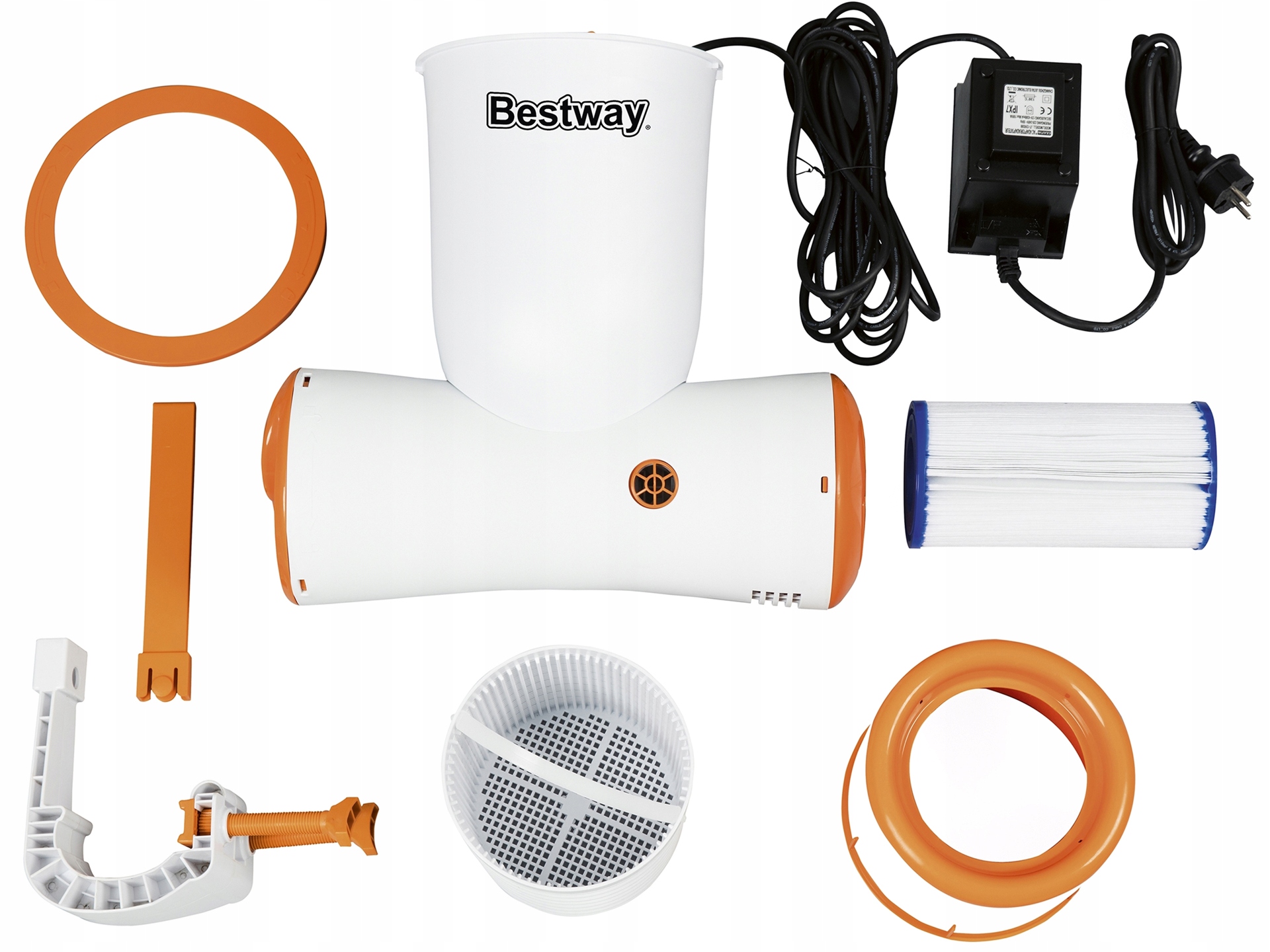 - Набір включає: фільтрувальний насос, фільтр, джерело живлення, сітчастий фільтр, інструкцію англійською польською