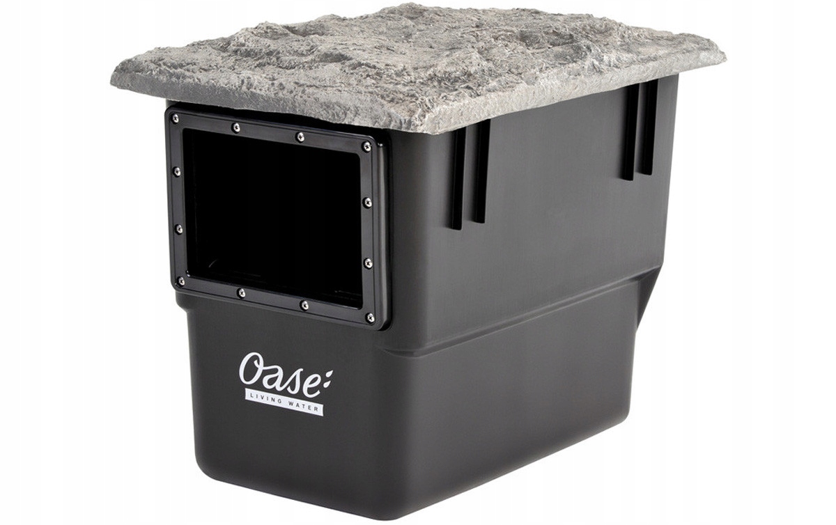 Міцний скімер для установки на краю ставка. Збирає листя, пилок та інші плаваючі частинки на поверхні ставка до 50 м². Скімер кріпиться безпосередньо до краю ставка і може компенсувати коливання рівня води до 100 мм. Асортимент скіммерів OASE включає як плаваючі моделі, так і стаціонарні скімери, інтегровані з системою фільтрації.
