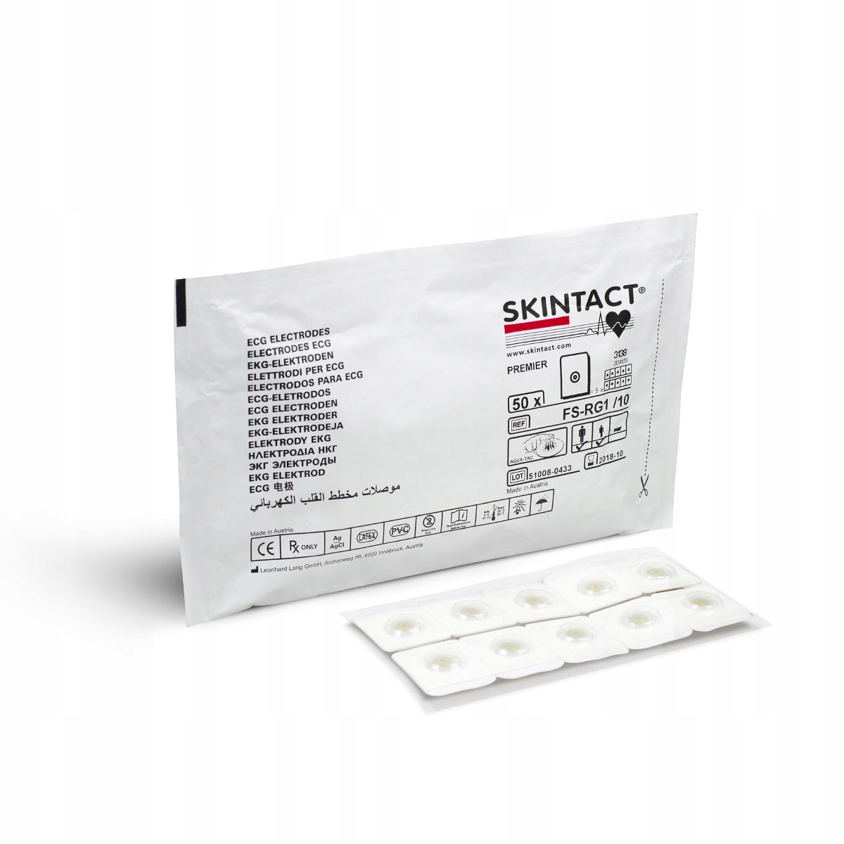 Електроди ЕКГ Skintact FS-RG1/10 розміром 32x41 мм, виготовлені компанією Leonard Lang, відмінної якості універсальні електроди з надійним зчепленням. Забезпечуючи точні вимірювання та комфортне використання, ці електроди відповідають стандарту EC12 стандарту ANSI/AAMI для одноразових електродів ЕКГ.
