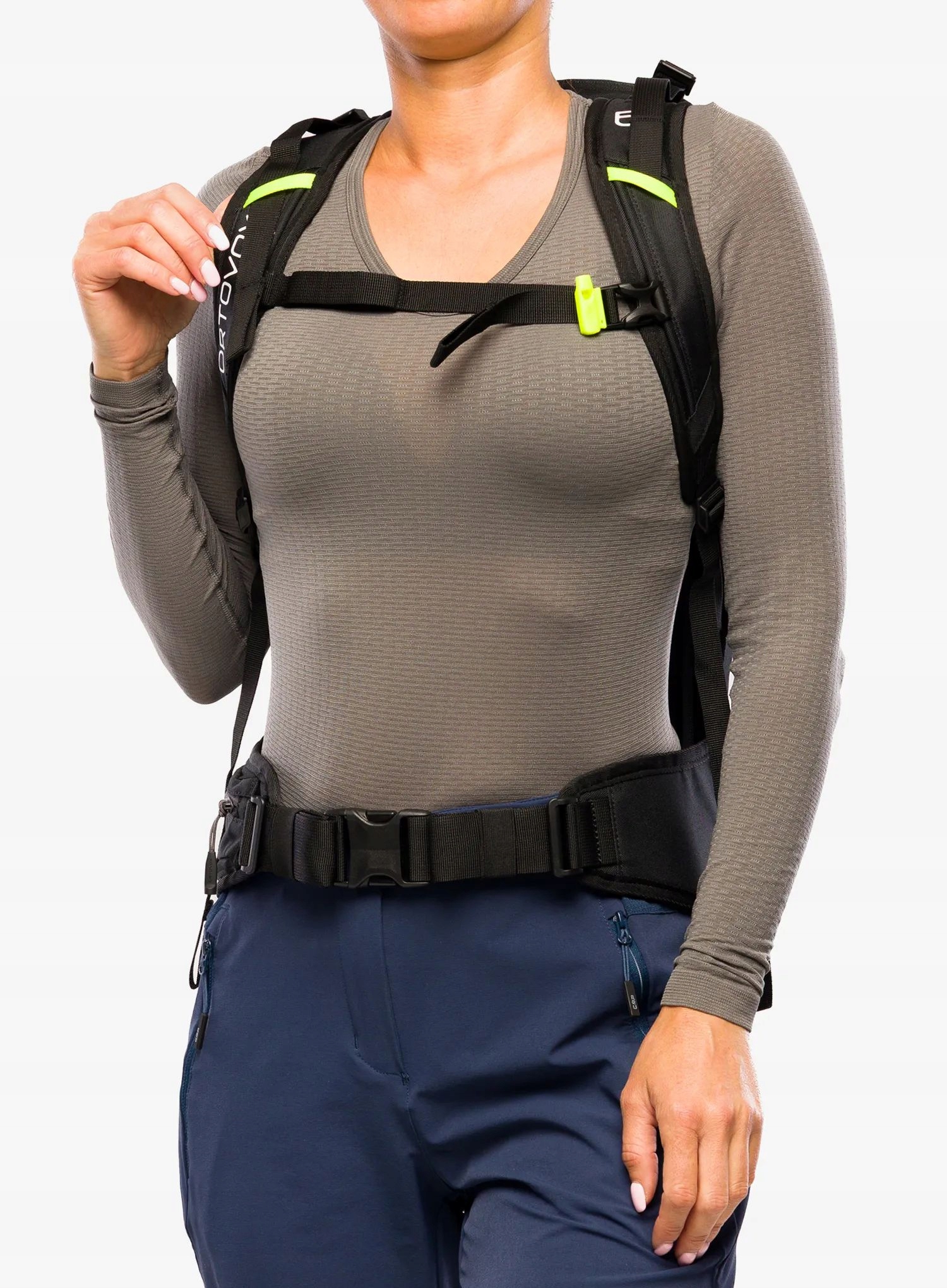 - Ремені та стегновий ремінь, оздоблені м’яким неопреновим матеріалом;