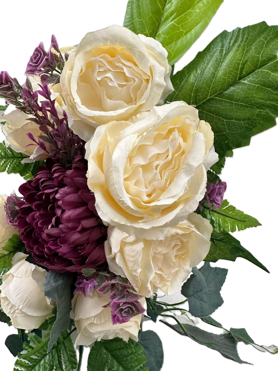 A Витончена, елегантна та стримана квіткова композиція для могили висотою приблизно 54 см є чудовим вибором для людей, які шукають класичне, позачасове оздоблення могили. Букет зі штучних квітів високої якості, дуже схожих на живі.