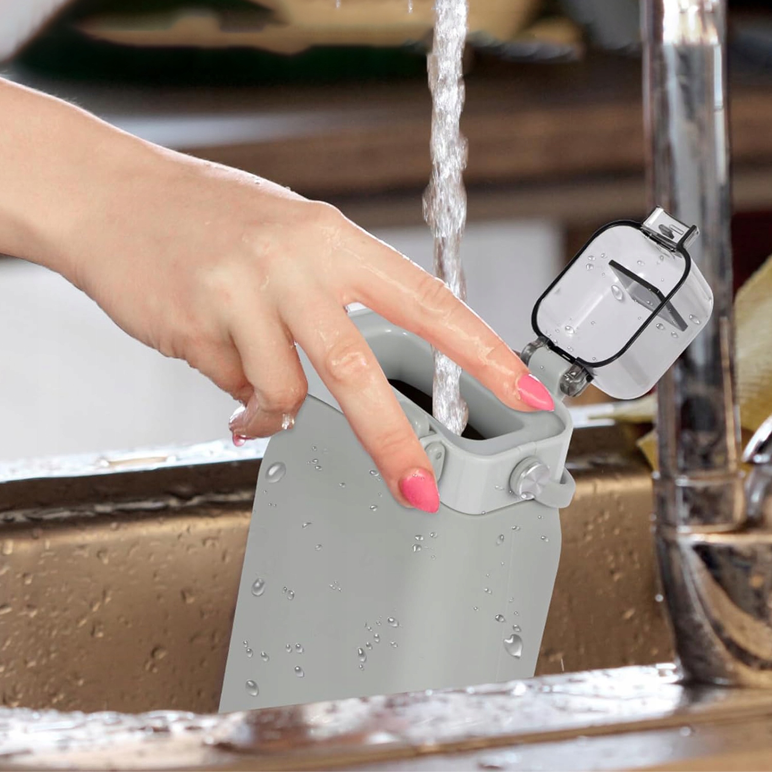 Силіконова пляшка для води може витримувати температуру від -50°C до 200°C. Підходить для більшості посудомийних машин і холодильників. Довший термін служби, ніж пластикові та скляні пляшки. Попередження: якщо ви розлили рідину при температурі понад 100 ℃, покладіть її на стіл, щоб уникнути опіків, тримаючи її.