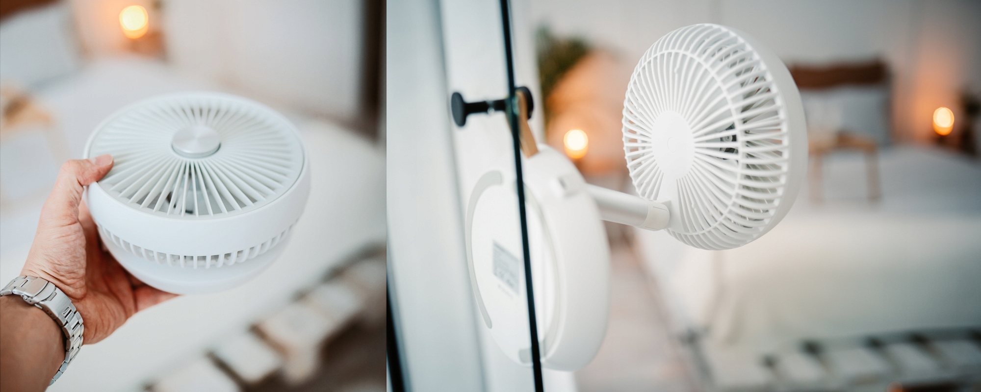 Humanas CoolAir F01 — це бездротовий вентилятор, який дозволить вам не залежати від електричних розеток. Завдяки ергономічній складній конструкції ви можете помістити його в рюкзак або валізу і брати з собою туди, де нестерпна спека. Ви можете легко переносити його з кімнати в кімнату, транспортувати з дому в офіс або брати з собою в подальшу подорож. З вентилятором Humanas CoolAir F01 приємна прохолода завжди буде з вами!
