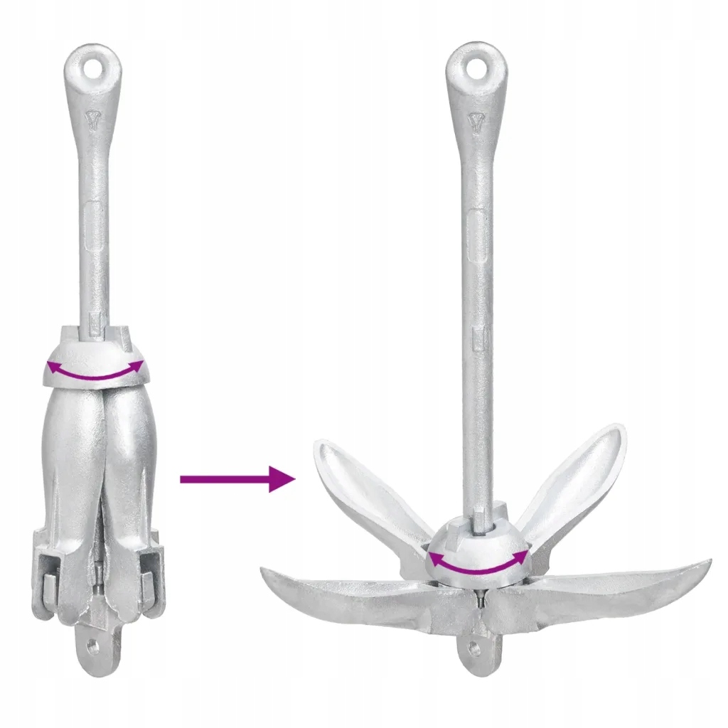 Якір оснащений конструкцією з 4 кігтями, які забезпечують відмінне зчеплення з різними типами поверхонь, такими як пісок, трава або мул. Це ідеальне рішення, яке забезпечить стійкість вашого судна і дозволить вам почувати себе в безпеці на воді.