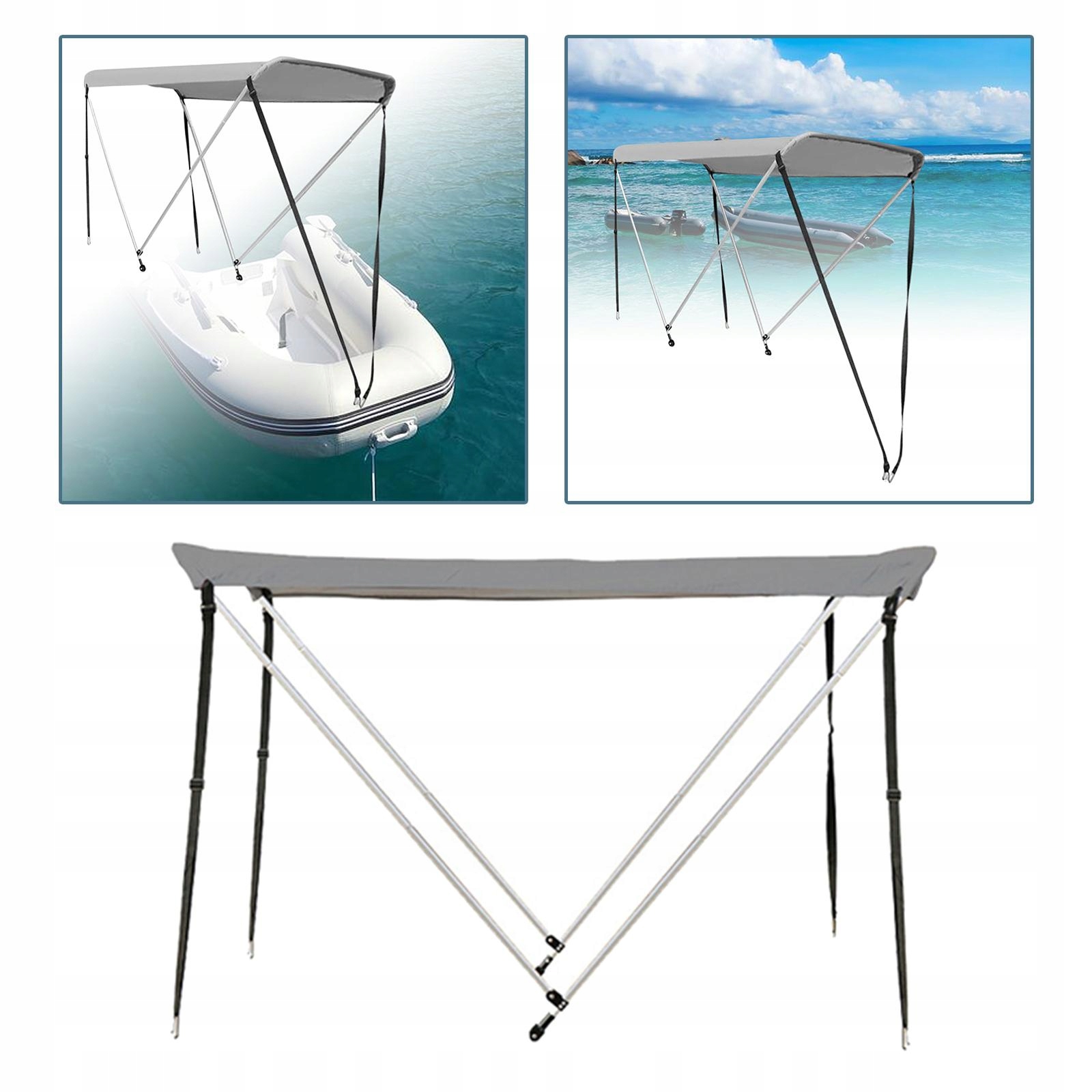 - Надувний балдахін, рибальський човен, каяк, сонцезахисний навіс, виготовлений із тканини Оксфорд зі сріблястим УФ-захисним покриттям і опорами з алюмінієвого сплаву - міцний, легкий, водонепроникний і проти ультрафіолету