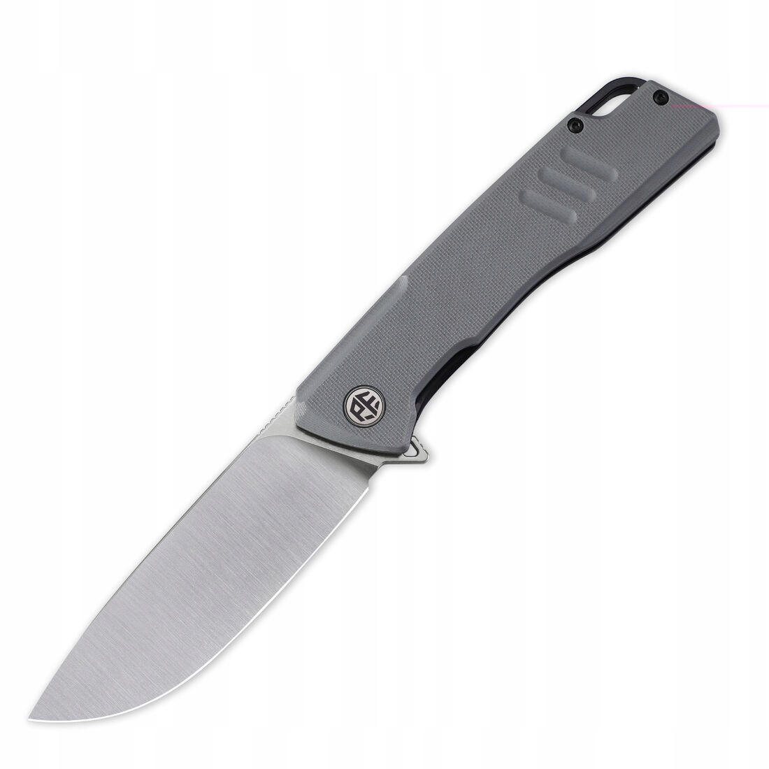Сіра ручка G10, встановлена на сталевих вкладишах, забезпечує зручний хват і довговічність в одному. Ергономічна форма адаптується до руки, а ребриста прокладка додає характеру. Матеріал G10 стійкий до погодних умов і механічних пошкоджень.