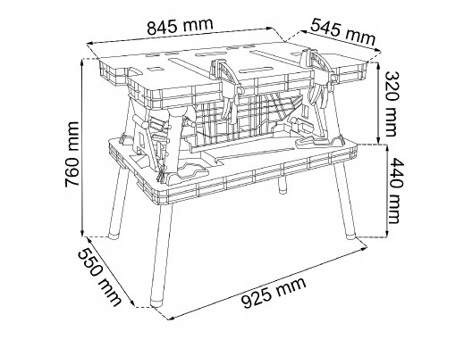 Ви можете розмістити інструменти, якими часто користуєтеся, на практичному нижньому столі й завжди мати їх під рукою Вага 5,9 кг Отвір 30 см Максимальне навантаження 453 кг Розміри Ш 85 x В 75,5 x Г 55 см