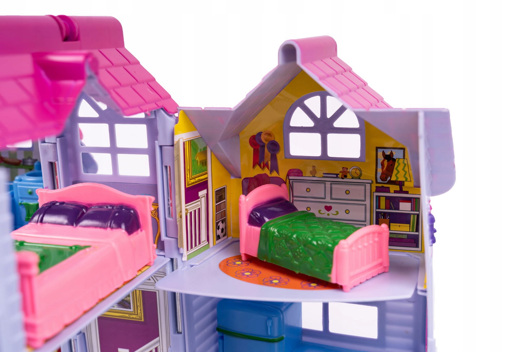 Будинок виготовлений з дуже хорошої якості матеріалу. Завдяки Веселого кольору підбадьорить кімнату кожної маленької дівчинки. будинок можна скласти разом з меблями та носити у вигляді валізи . Це портативний та легкий . Отже, ви можете взяти його з собою на прогулянку або відвідати.