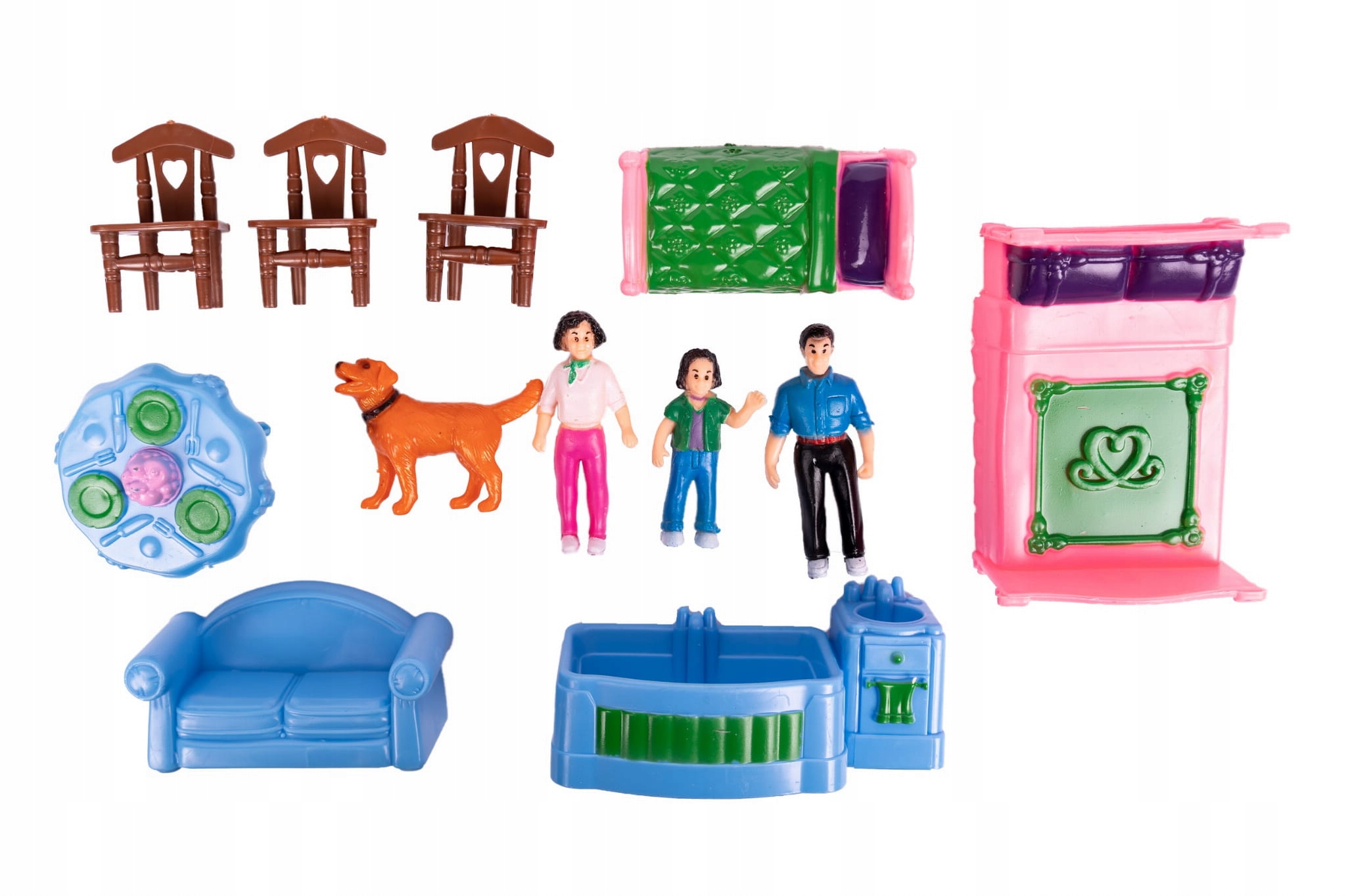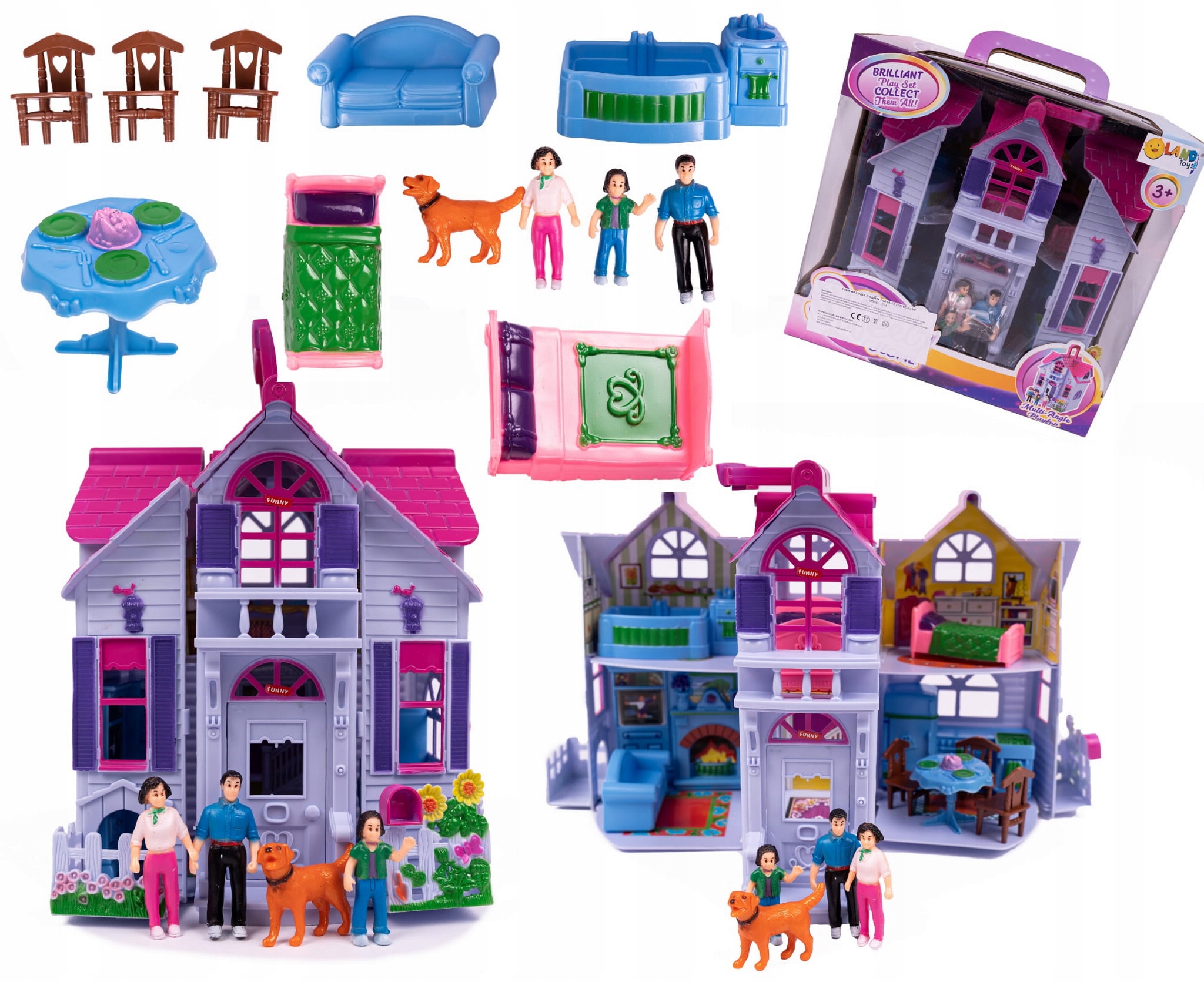 Будинок сприяв 6 номерів: зал, кухня, вітальня з каміном, ванною кімнатою, спальні та дитячої кімнати. Крім того, набір як портативне обладнання прикріплені статуетки сім'ї 3-х осіб, собаку, а також численні меблі. Безсумнівною перевагою є відкриття холодильника . Декоративні елементи, як міні -сад з парканом, листівкою або жалюзі.