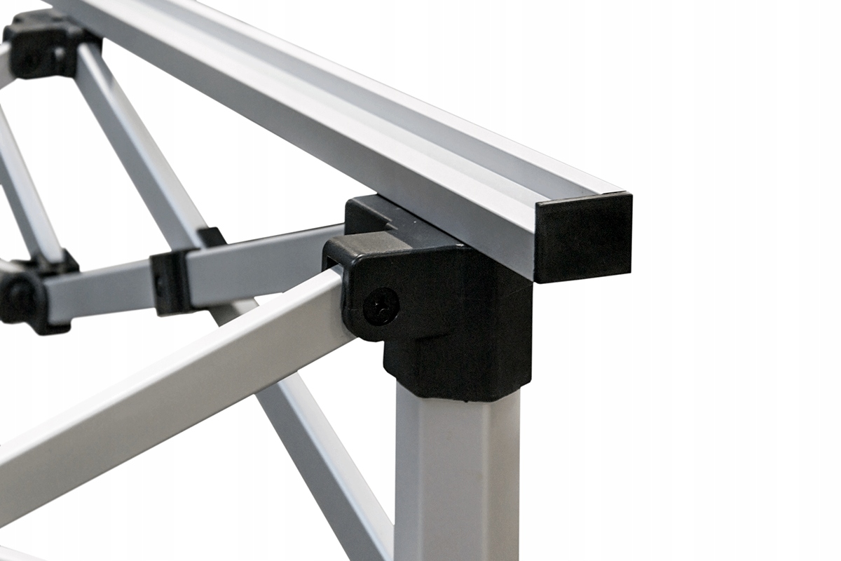 4 Завдяки розкладному дизайну та регульованій висоті він ідеально працює під час ярмарків, шоу, акцій та всіляких комерційних та приватних заходів. Її великий верх та стабільна конструкція забезпечують зручну роботу та презентацію продукції.Технічна специфікація: