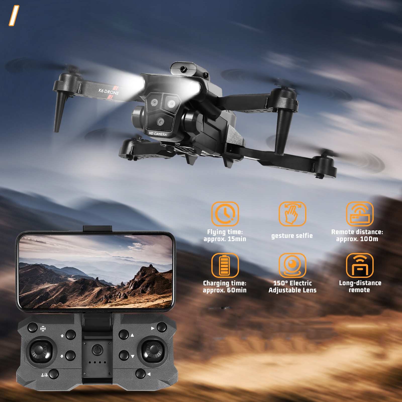 - простий у використанні. . Оснащений гвинтом, що підтримує перешкоди та 2 батареї, час польоту становить до 15 хвилин. Навіть початківці можуть швидко захоплюватися польотом і насолоджуватися цим досвідом. Підключіть свій мобільний телефон, щоб випробувати фотографії жестів