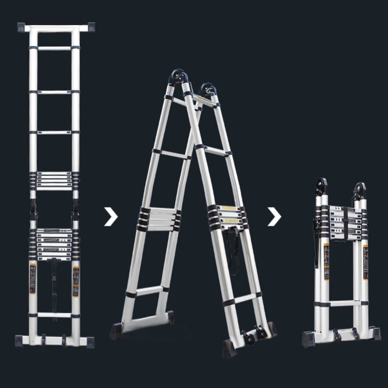 Подовжувальна драбина може використовуватися як сход 3,3 м + 3,3 м A-Frame або пряма драбина 6,6 м. Висота роботи постійно регулюється, що дозволяє встановити відповідну висоту залежно від ваших потреб. Його можна широко використовувати для домашніх завдань, таких як зміна цибулин, очищення вікон, садівництво та інженерні потреби. Це також необхідний інструмент.