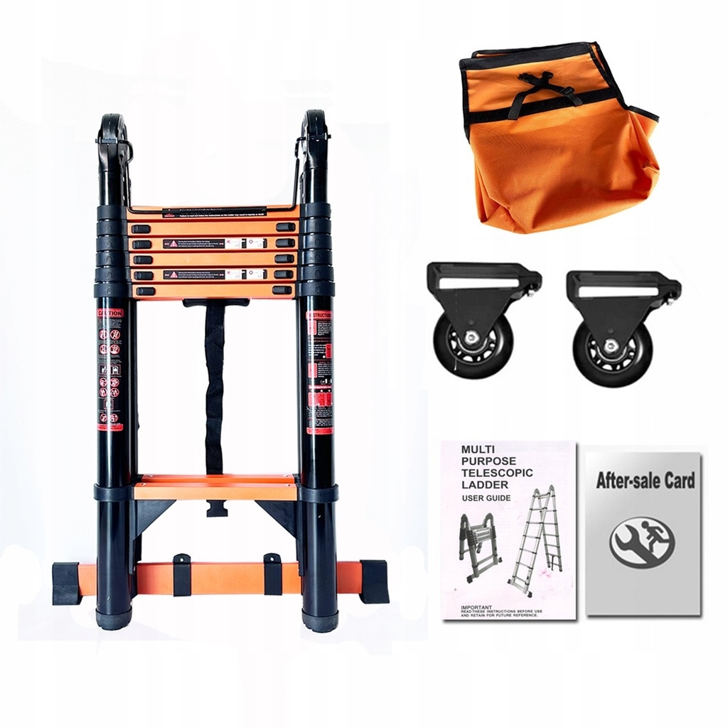 Ця складна телескопічна драбина оснащена ближчою ручкою та колесами, що полегшує транспорт і займає мінімальну кількість місця. Наша телескопічна драбина може зберігатися в будь -якому місці за дверима, вдома або на робочому місці.