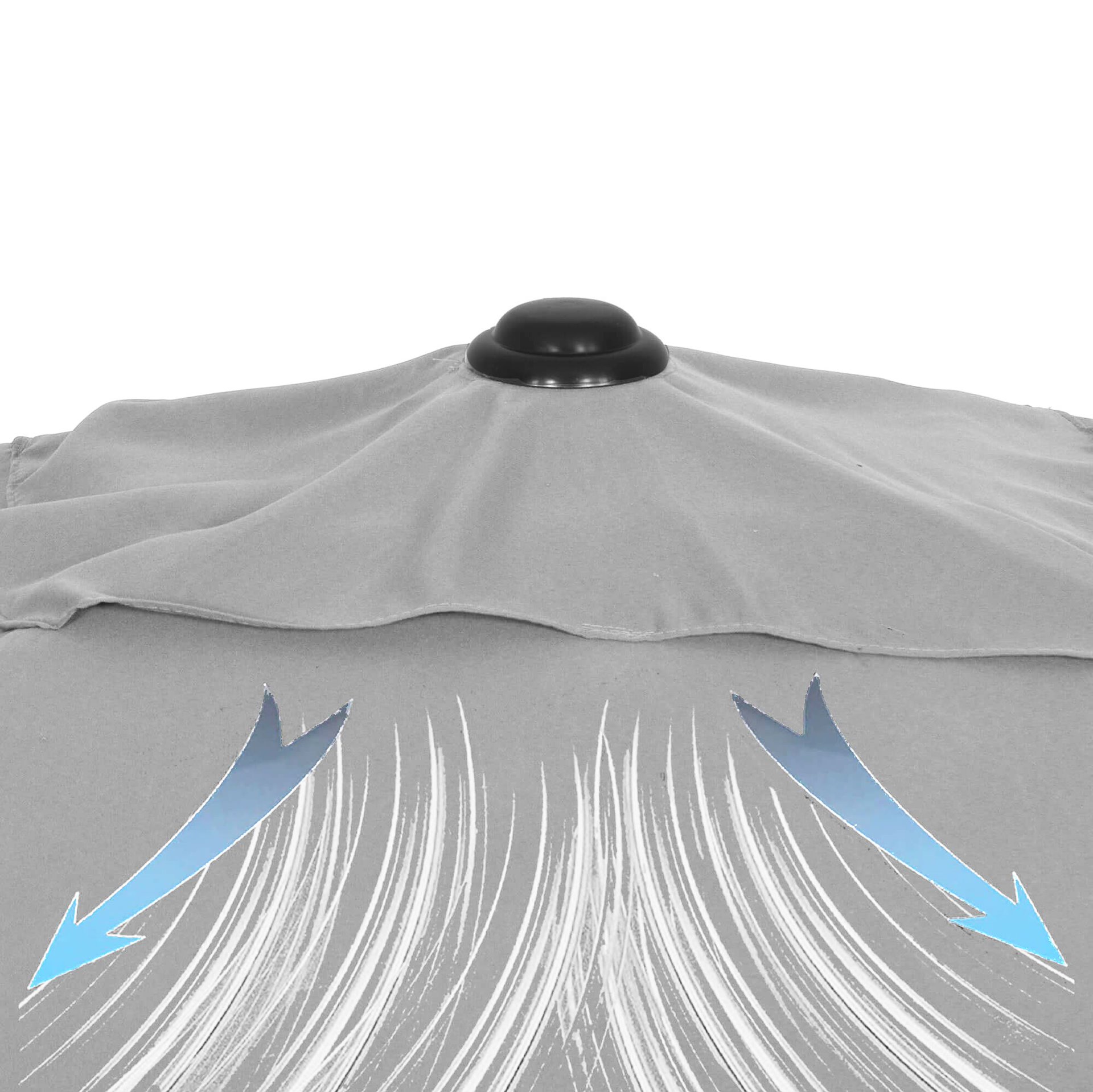 Перебування під сонцем - будь то парасолька чи вітрило, можуть бути пов'язані з додатковим нагріванням та відсутністю циркуляції у безвітряні дні. Наша парасолька оснащена вентиляційною отвором у верхній частині навісу , що, безумовно, збільшить комфорт використання, особливо якщо наймолодший грає під парасолькою.