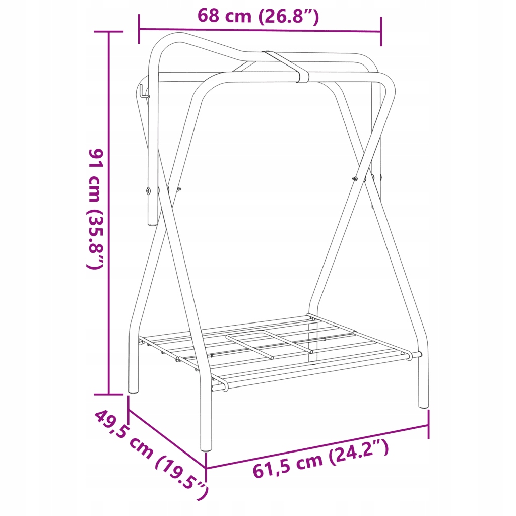 Складна сідлова підставка з полицею, пофарбованим залізом, чорним, 68x49.5x91 см