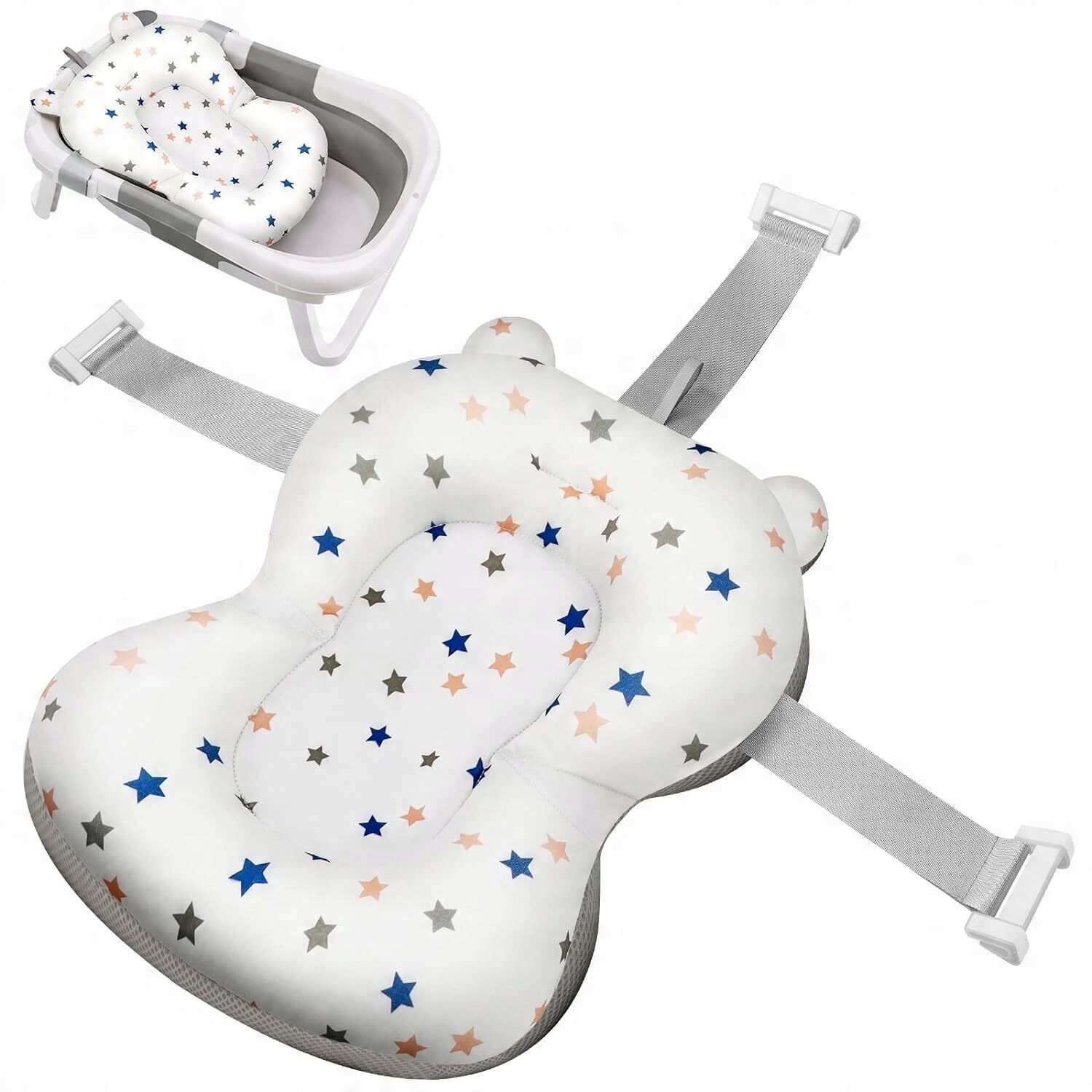 Складена ванна для новонародженого з накладкою, з дренажним отвором, сірим