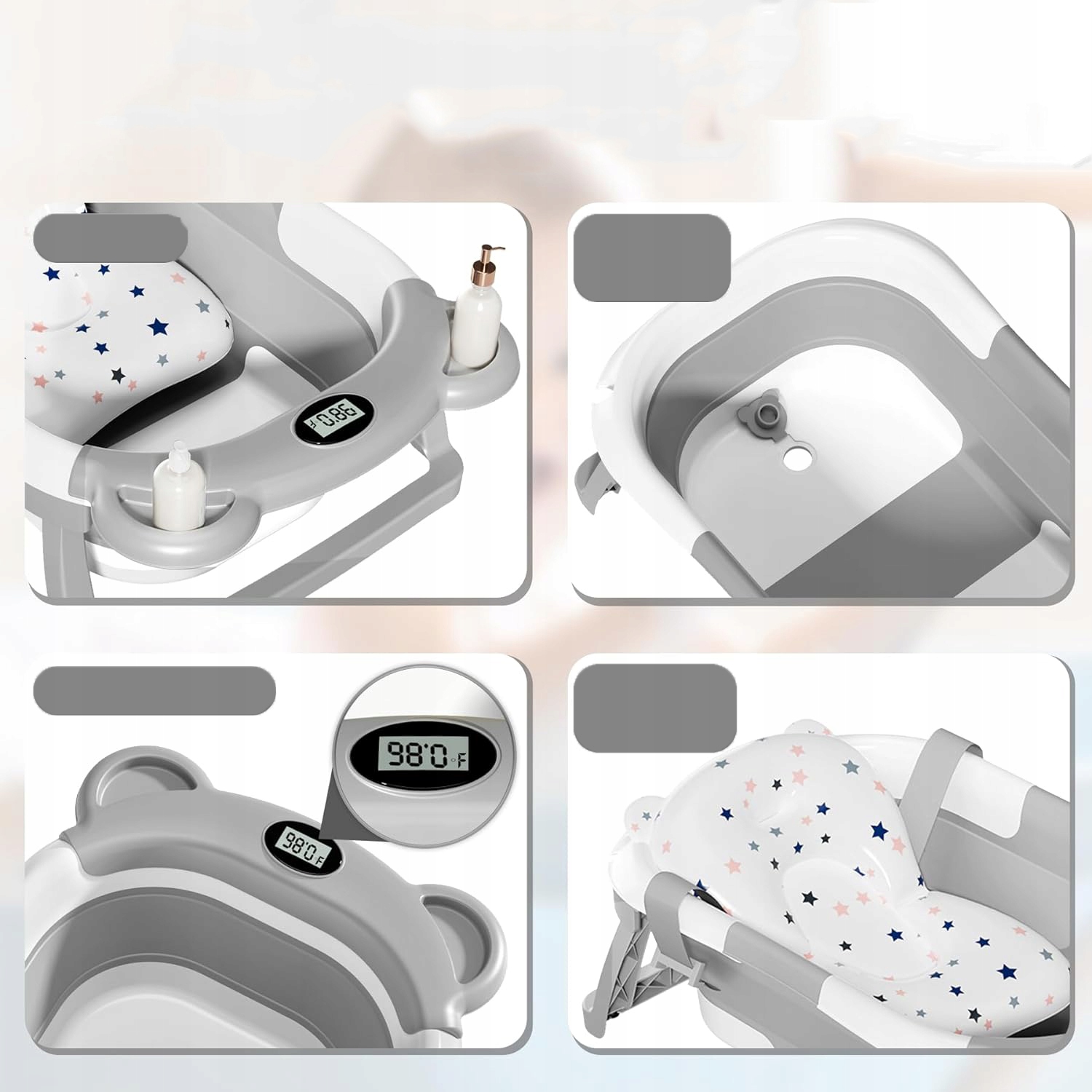 4 > Складена дитяча ванна має геніальну, подвійну складну структуру з товщиною менше 4 дюймів. Це полегшує легке зберігання в будь -якому куті та збільшує портативність для зручності в подорожах, завдяки якому він є ідеальним супутником як вдома, так і під час подорожі. Відтік з підлоги з гумовою вилкою гарантує гладке спорожнення без необхідності в режимі реального часу. Система блокування температури забезпечує точний моніторинг, завдяки якому він є універсальним вибором для використання у ванних кімнатах, будинках, під час подорожі або в кемпінгу. /b> Наша ванна для новонароджених, вона оснащена висячою, знімною подушкою, що забезпечує оптимальну підтримку ніжної голови та шиї. М'яка подушка піднімається на поверхні води без зусиль, створюючи зручний і приємний досвід, мінімізуючи скуголення під час купання. Малюк. Складна структура адаптована для супроводу дитини від новонародженого до маленької дитини (0-36 місяців) під наглядом дорослого, забезпечуючи приємну та безпечну ванну. Матеріал: виготовлений з високоякісного матеріалу PP+TPE, дитяча ванна спочатку ставить безпеку, довговічність та спокій. Небезпечно і стійкий до кусання, ванна не зашкодить дитині. Стабільна конструкція з чотирма кутами внизу збільшує структурну стабільність, мінімізуючи ризик перекидання. >