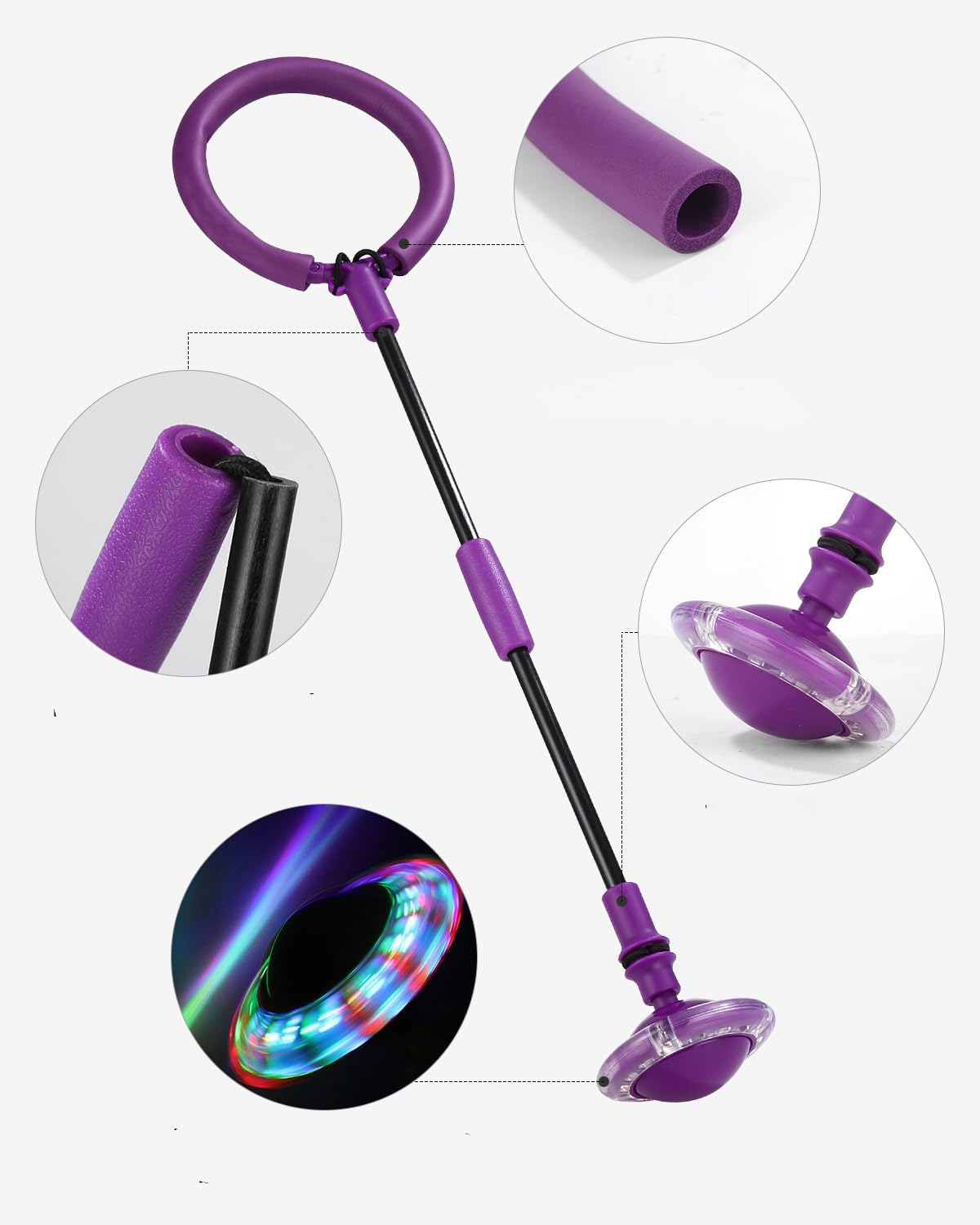 🌈 🌈 присягання стрибаючого кільця: стрибаючий м'яч - це новий вид дитячого стрибкового кільця. Коли дитина стрибає над колесом гойдалки однією ногою, барвисте світло -шоу автоматично відтворюється електромагнітною індукцією. Нові продукти високої якості: Якість продукції постійно покращується, а новий стрибковий м'яч складений. Паличка виготовлена з високоякісних матеріалів ПВХ та ПП і оснащена смугастим, потовщеним, довгим