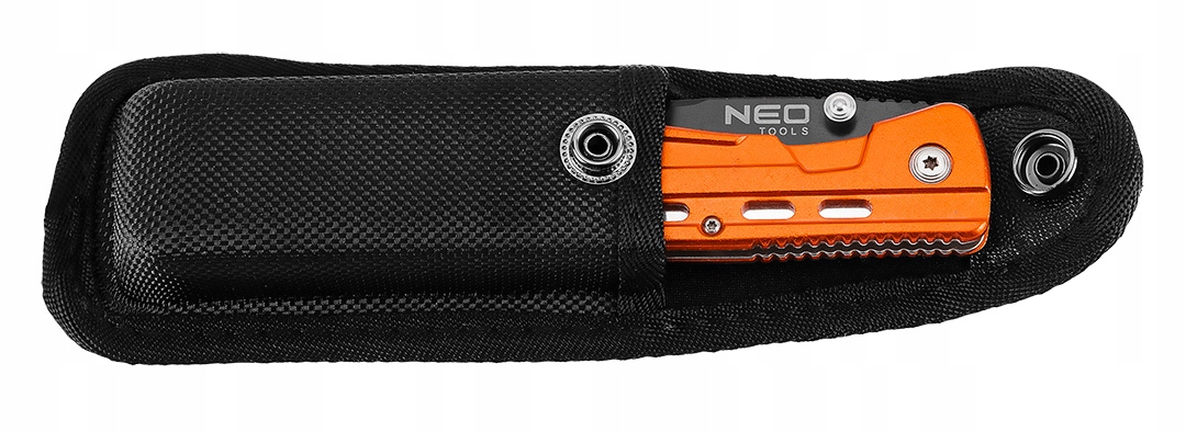 Складний ніж з Neo Lock (посилання 63-026) має лезо, виготовлене з 440 сталі, довжиною 8,5 см. Замок від несподіваного закриття забезпечує безпеку під час роботи. Анодізований алюмінієвий корпус збільшує довговічність продукту та корозійну стійкість. Спеціальне лезо дозволяє вирізати пояс, який значно полегшує звільнення під час загрози в машині. Міцна нейлонова кришка полегшує зберігання та транспортування. Бренд NEO відповідає очікуванням професіоналів.