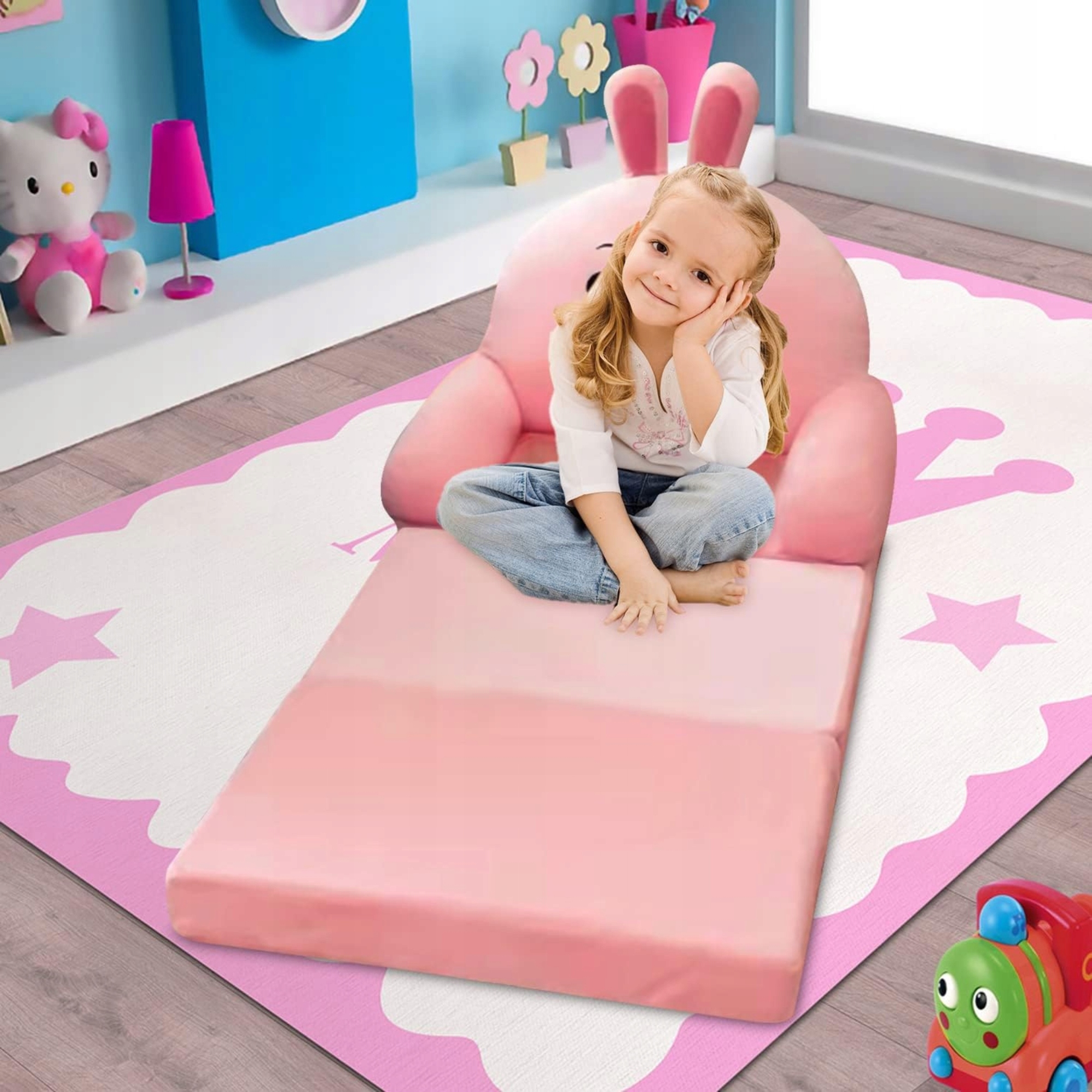 Складений плюшевий диван для дітей з візерунком для тварин, рожевий