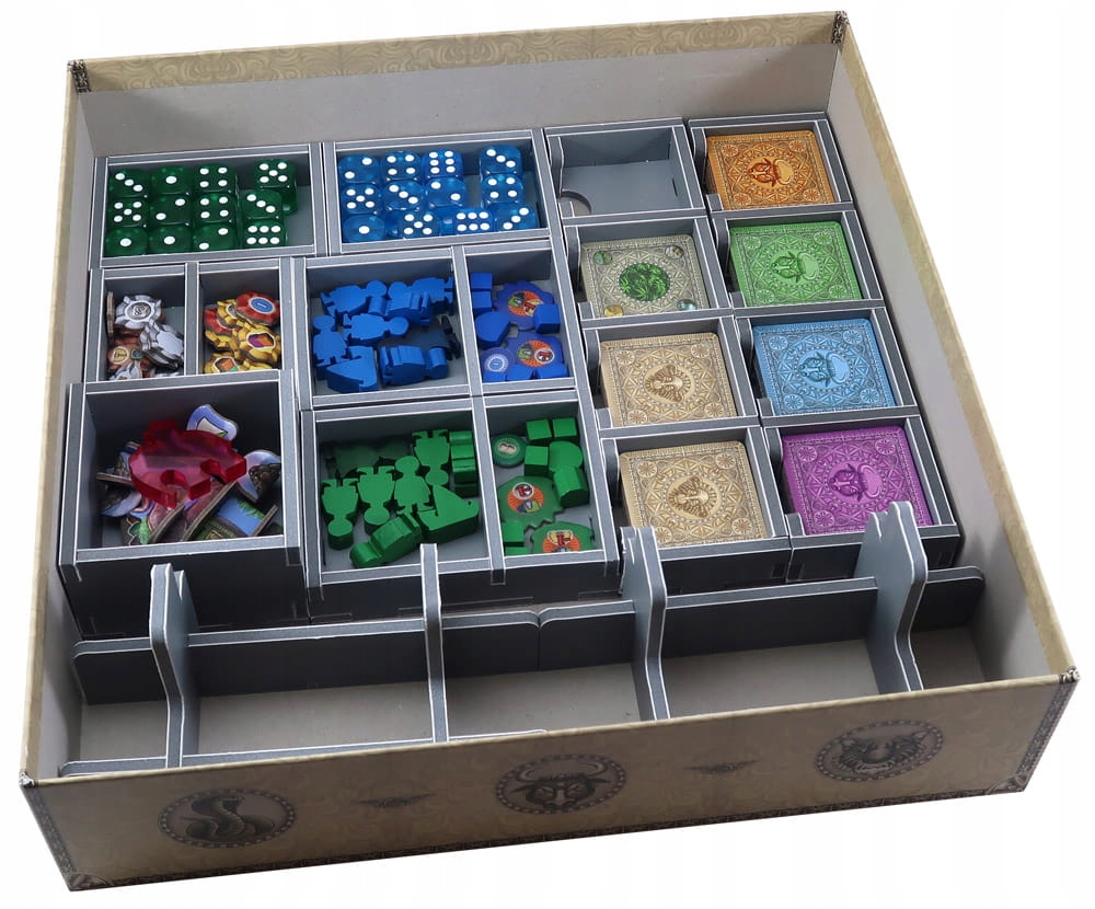 Складені організатори космосу забезпечують ергономічне розташування компонентів гри та збільшують задоволення від гри. Відсіки для елементів можна використовувати під час гри та спростити її підготовку та прибирання після гри.