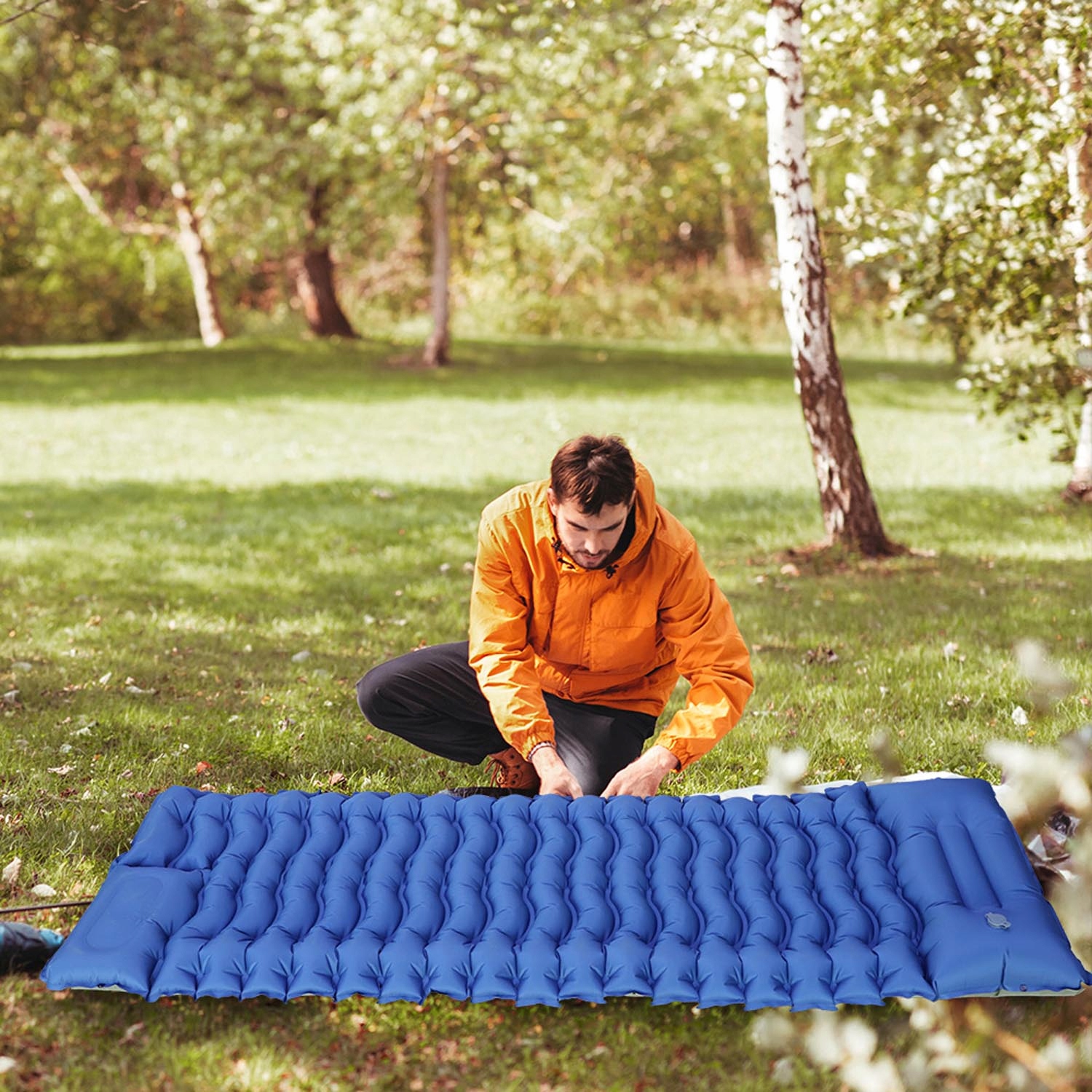 Кемпінговий килимок, виготовлений із зовнішнього нейлонового матеріалу 40D та внутрішнього герметичного покриття герметизації ТПУ, довговічного, постійного, постійного, не ламається і легко чиститься. Ергономічна конструкція дозволяє добре спати навіть у складних зовнішніх умовах. 🌳